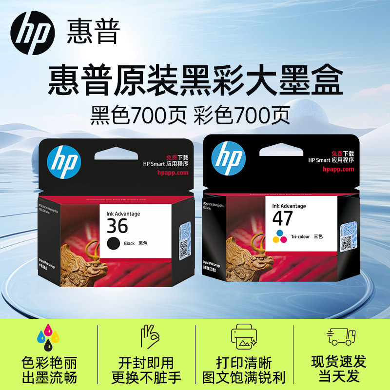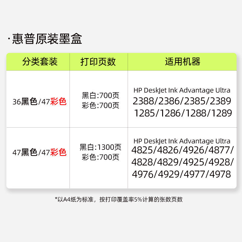 📚 惠普原装47黑彩色36墨盒DJ4976 2388 2386 2385 2389 1285 1286 1288 1289 4825 4826 4926 4925 4978打印机