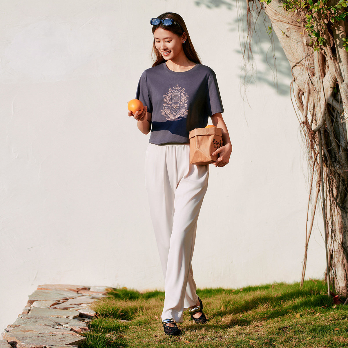 📚 歌蒂诗夏季专柜新款时尚印花宽松舒适百搭短袖T恤女8F24X0609