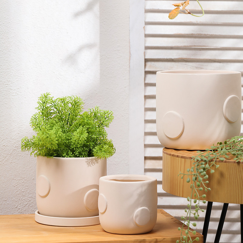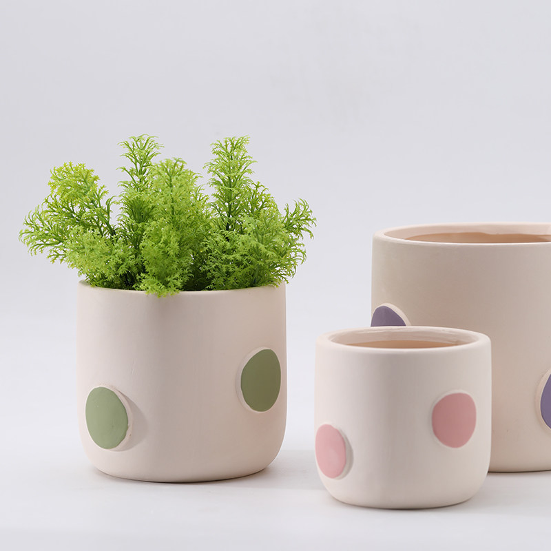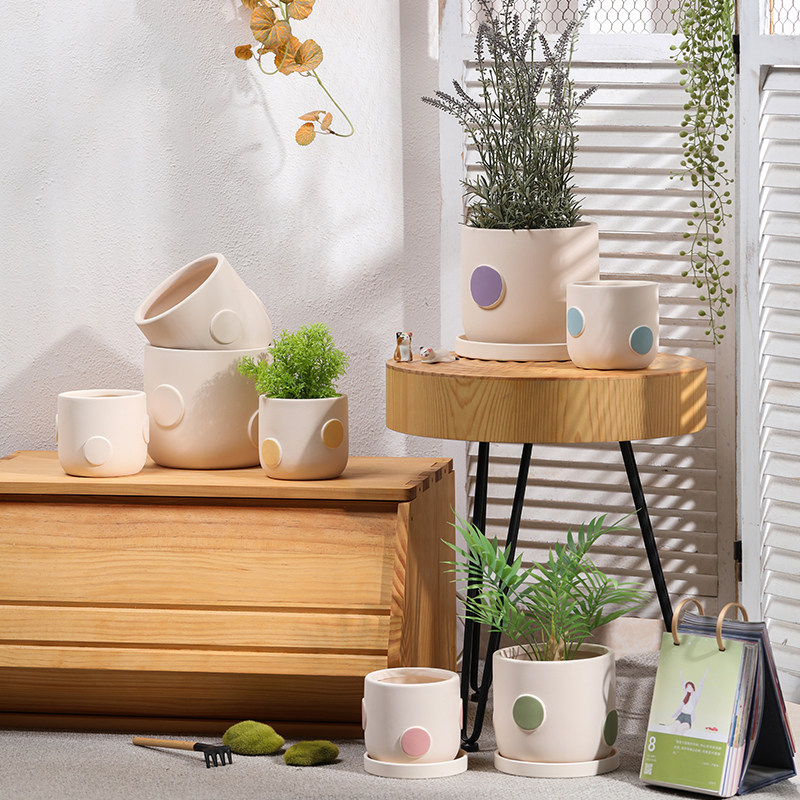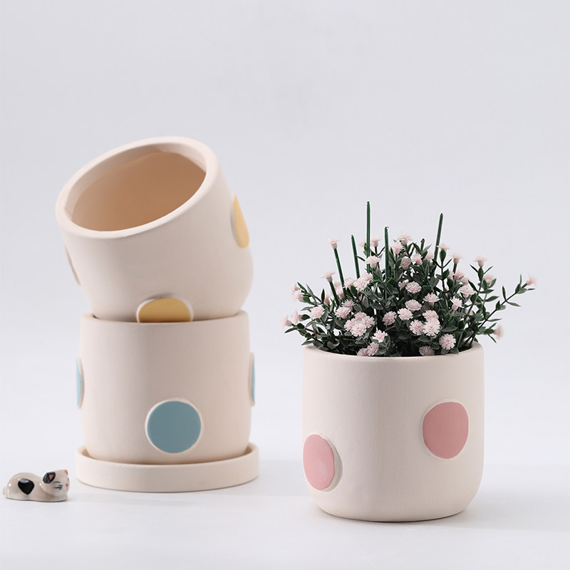 📚 北欧手绘上色陶瓷素胚花盆有孔带底座自吸水陶土罐绿植多肉蝴蝶兰