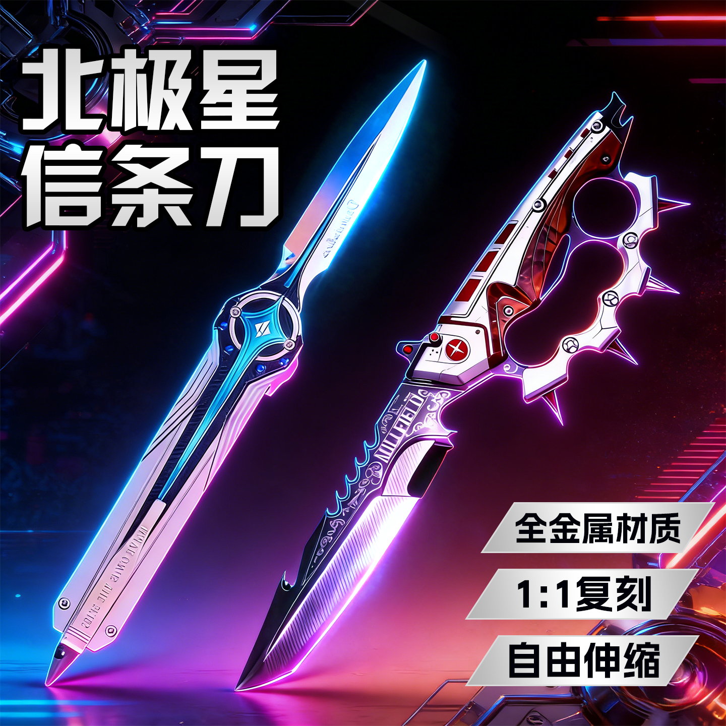 📚 正版三角洲行动信条刀皮S7金属武器模型匕首合金北极星弹刀未开刃