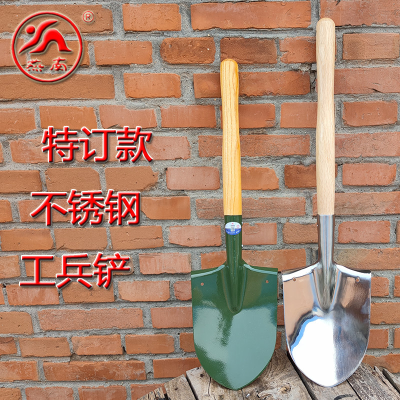 📚 燕南钢锹 不锈钢工兵铲加长款户外铲子铬钢205小锹青冈木车载钓鱼