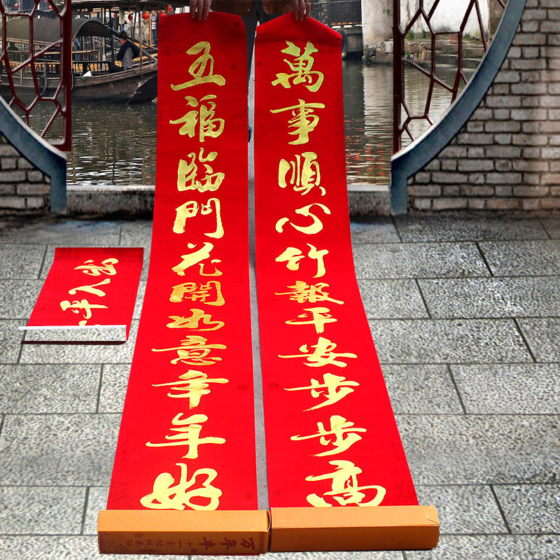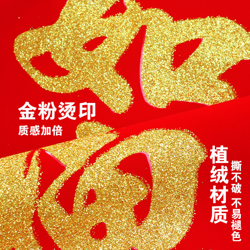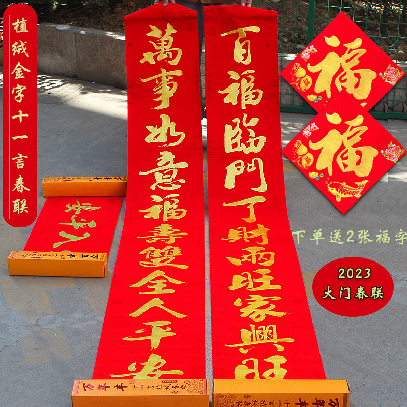 📚 马年新款植绒对联十一字大号烫金春联别墅大门春节新年装饰门对贴
