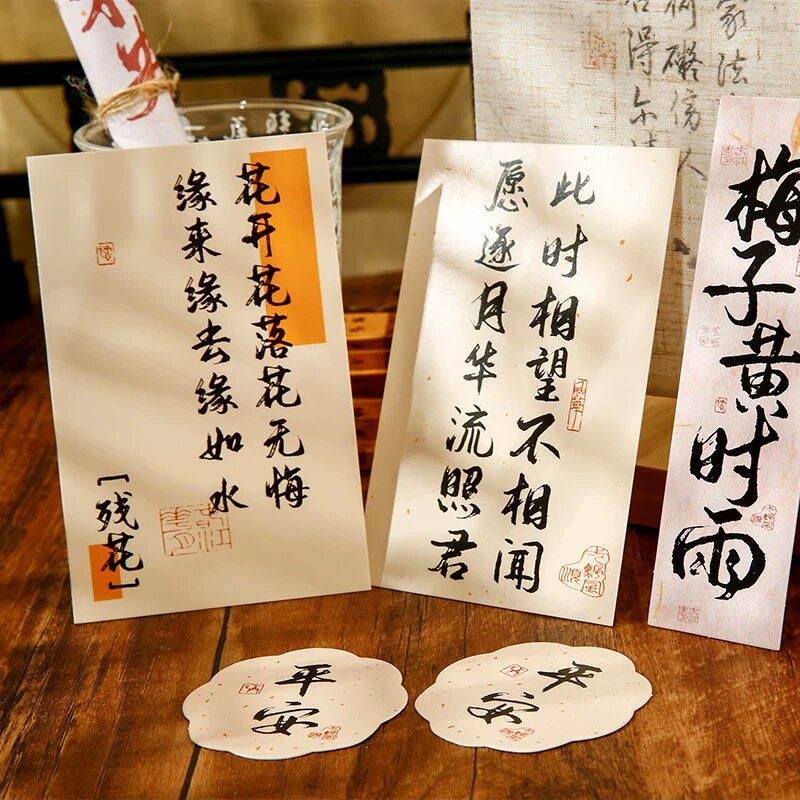 📚 4包人间闲月古风信纸信封套装B5信笺集礼物留言贺卡国风明信片