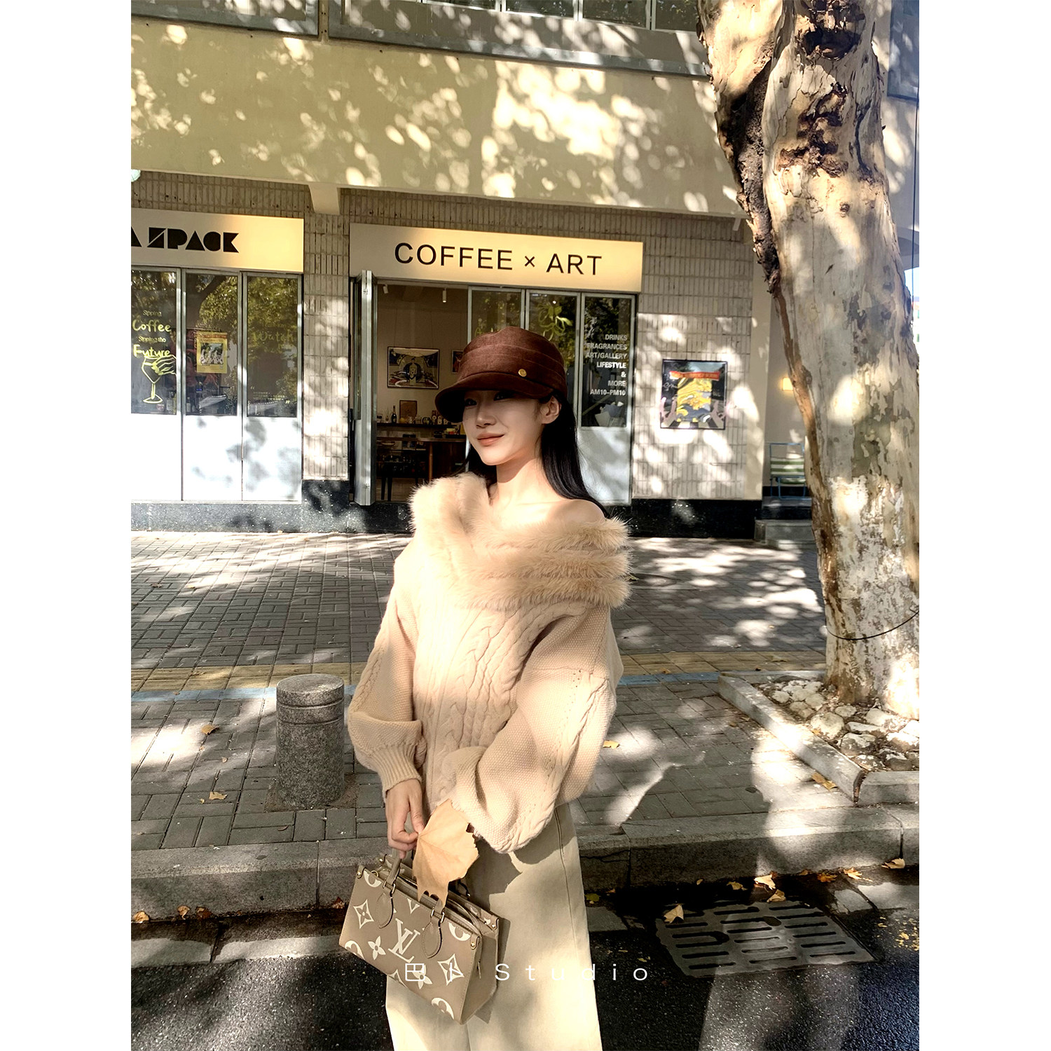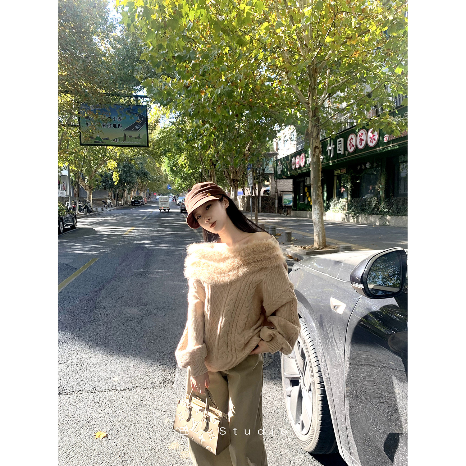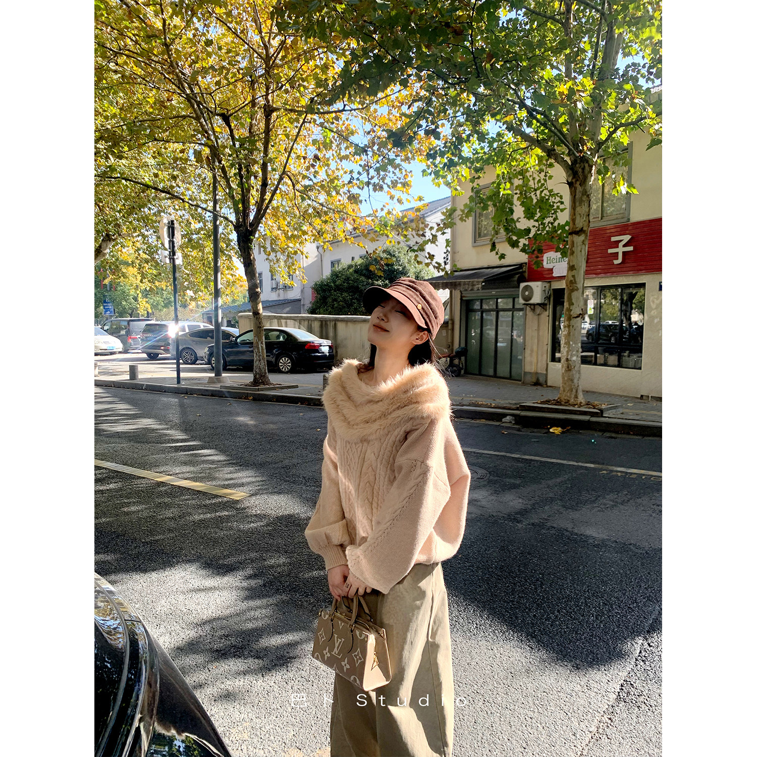 #巴卜Studio #卡其色毛毛拼接领毛衣女 #冬季新款 #宽松休闲针织套头上衣 #券后价169元 #时尚宠儿