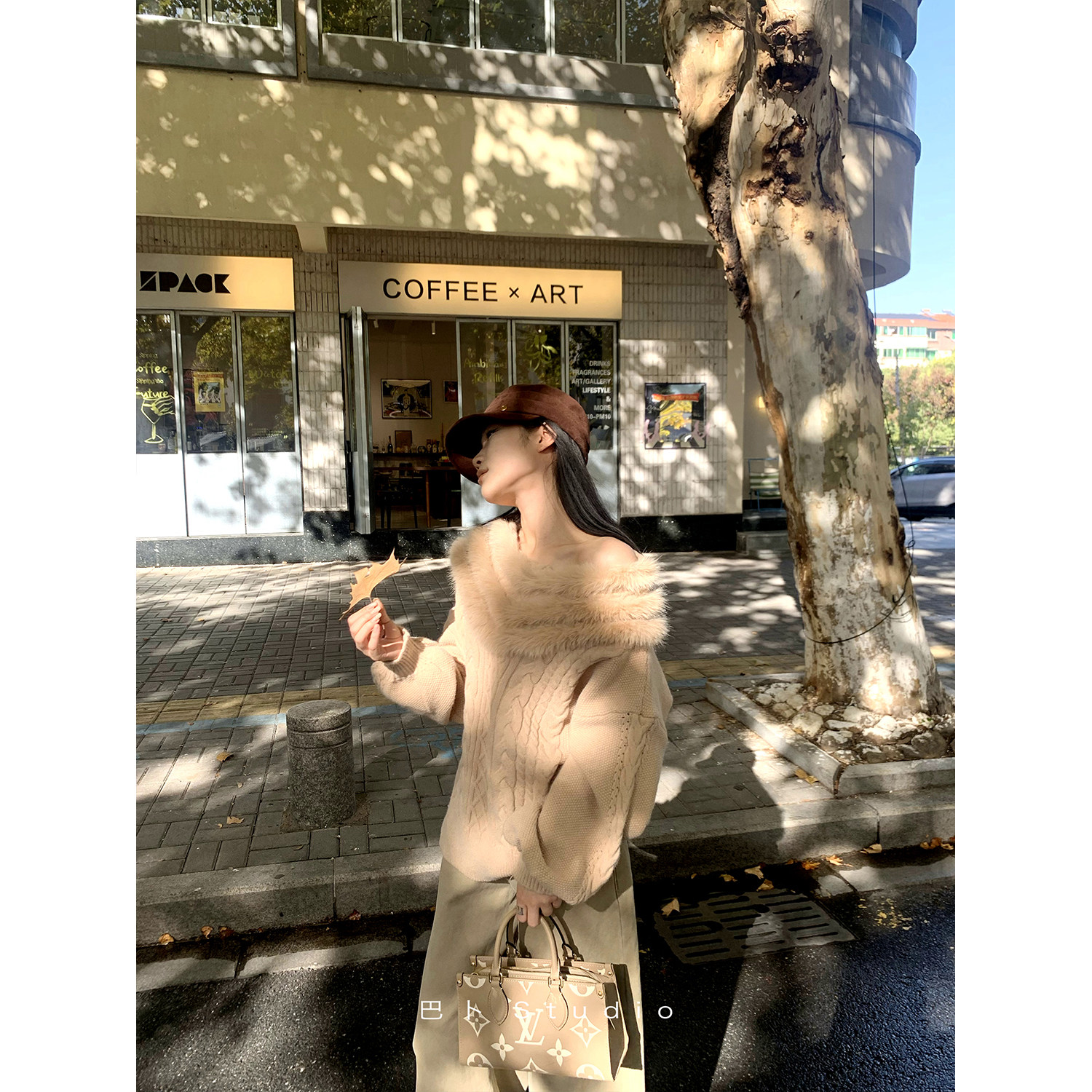 👗新衣入梦,这款巴卜Studio卡其色毛毛拼接领毛衣女冬季新款真的让我惊艳到不行!套头的设计简约大方,宽松休闲又不失精致感,简直是冬日里的时尚宠儿!