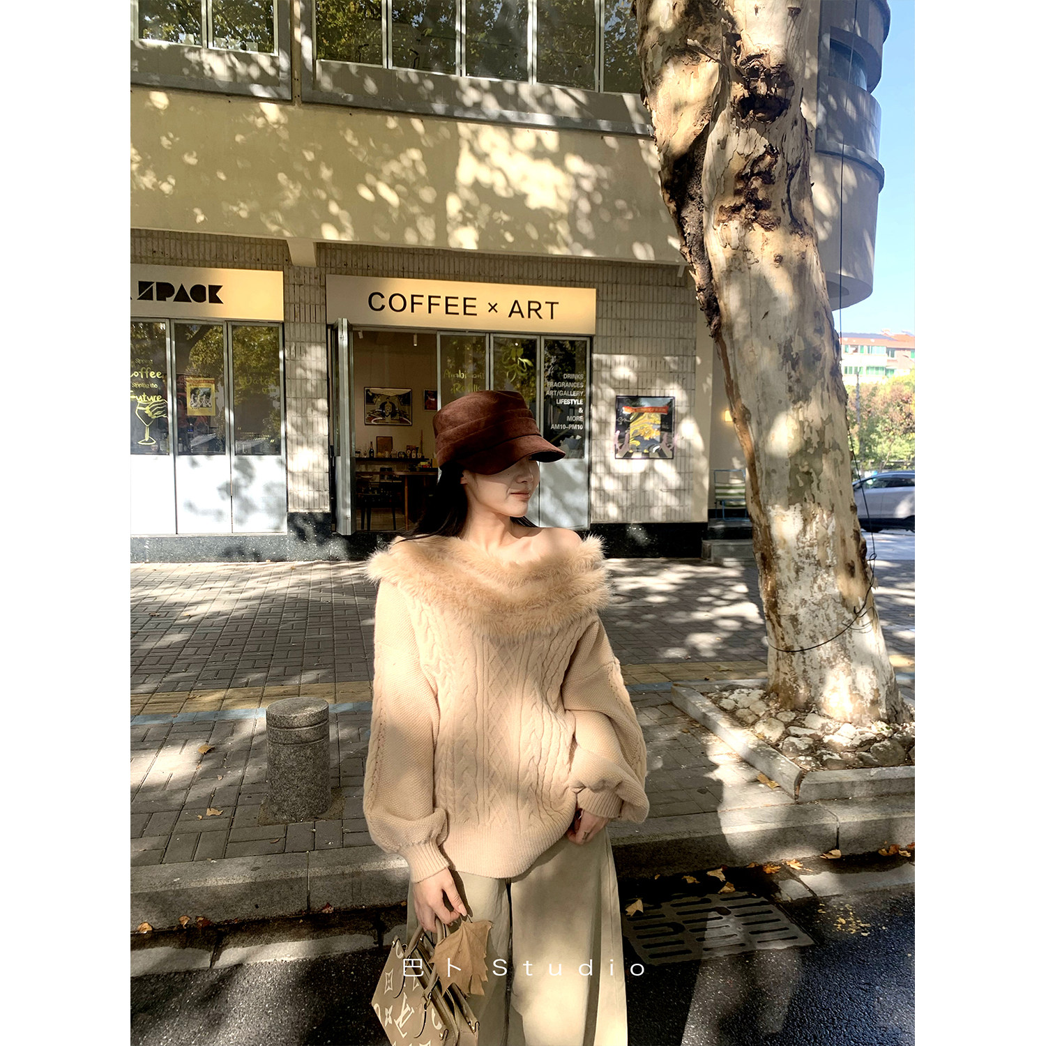 💥巴卜Studio卡其色毛毛拼接领毛衣女冬季新款!套头上衣券后价仅169元!💖