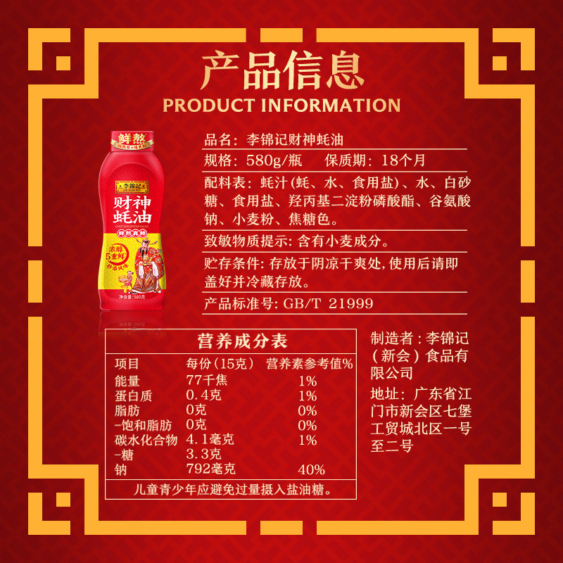 📚 李锦记财神蚝油挤挤装鲜蚝熬煮火锅蘸料炒凉拌提鲜调味家用580g*2