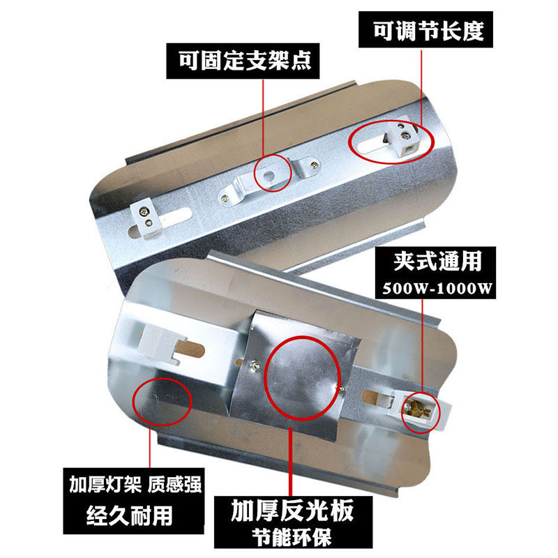 📚 碘钨灯架夹式500W1000w瓦通用加热取暖卤钨灯架太阳灯罩烤漆超亮