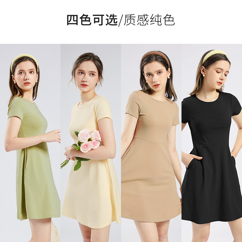 📚 法式纯色短袖连衣裙女2026夏季新款时髦气质修身弹力显瘦A字裙子