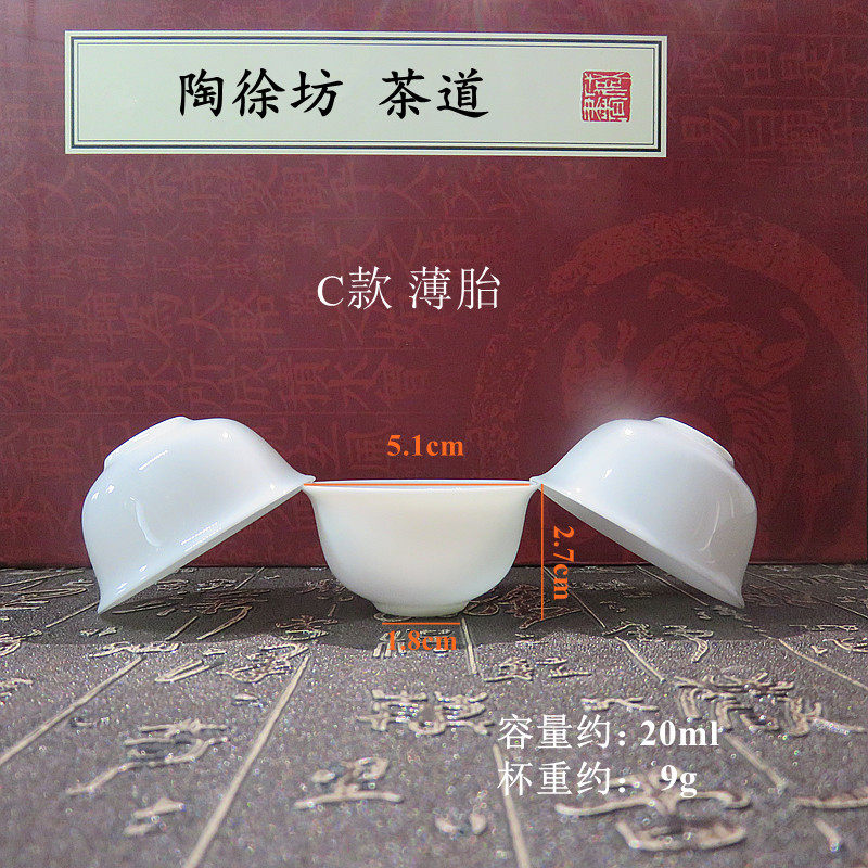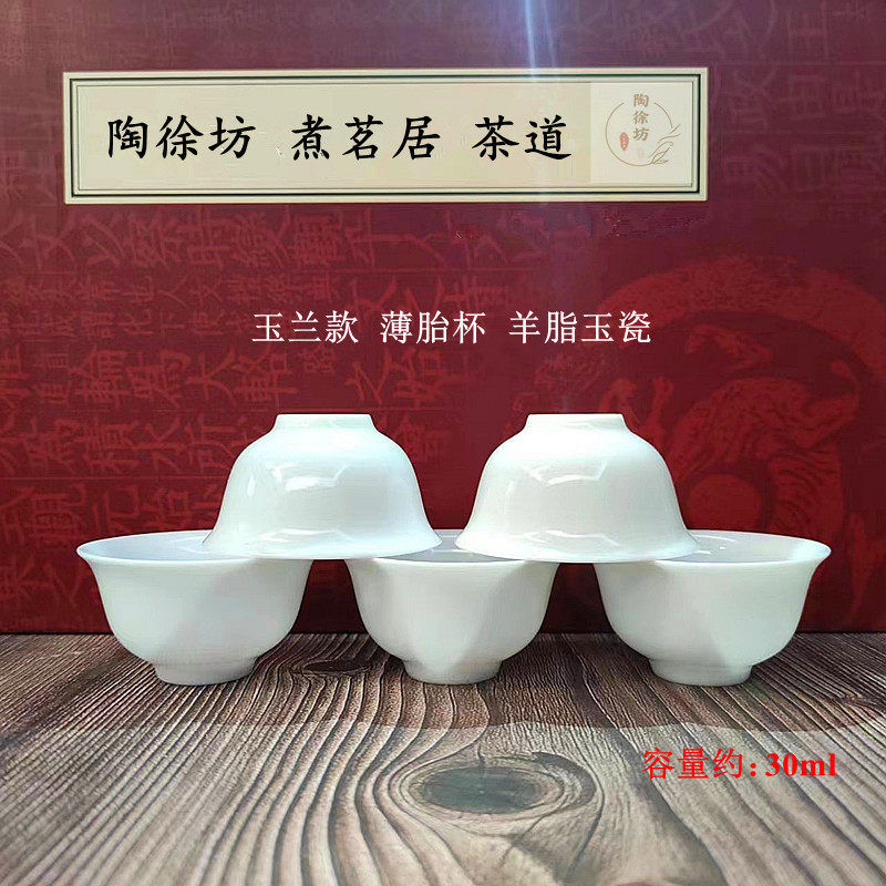 📚 薄胎高白羊脂玉瓷工夫小茶杯30/20ml纯白功夫品茗茶碗通透光轻质