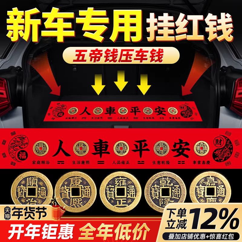 📚 新车挂红五帝钱压车钱车载汽车内摆件提车仪式上装饰挂件用品
