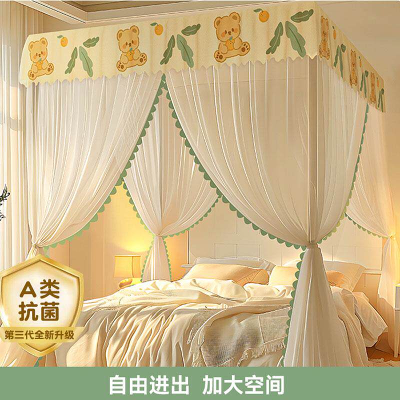 📚 三开门蚊帐家用2025新款卧室免安装1米8大床加厚支架乘2米的1米5