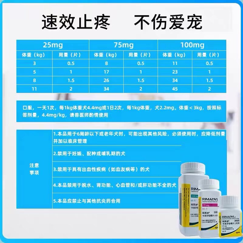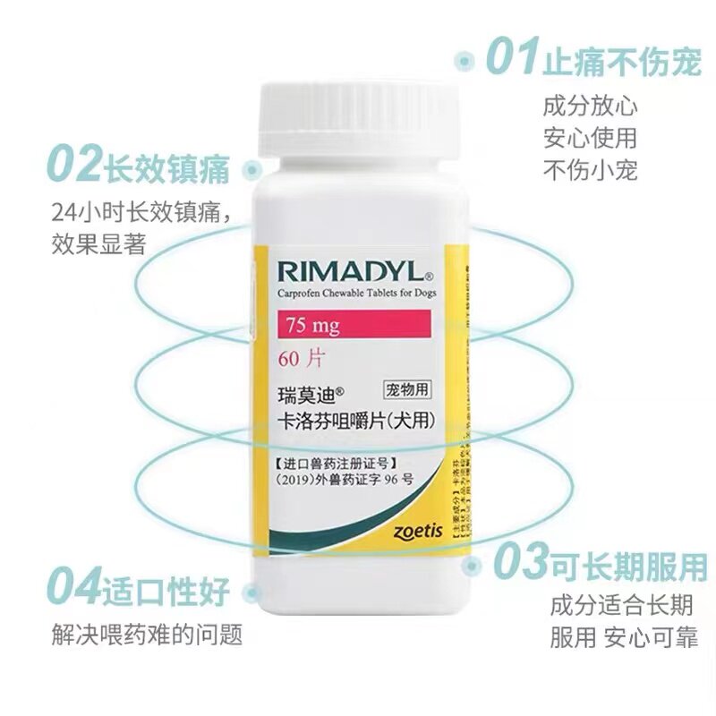 📚 瑞莫迪止疼药75mg宠物狗狗关节疼痛术后骨折犬止疼药卡洛芬咀嚼片