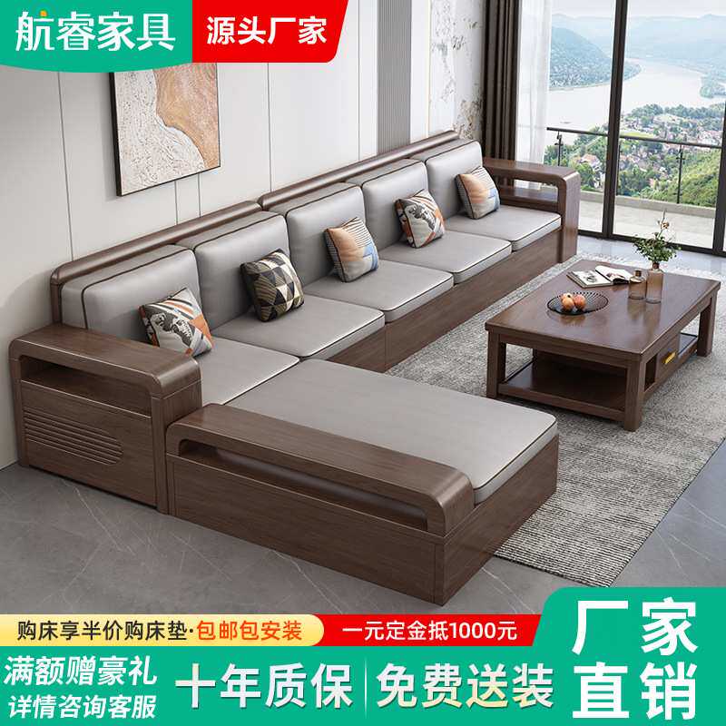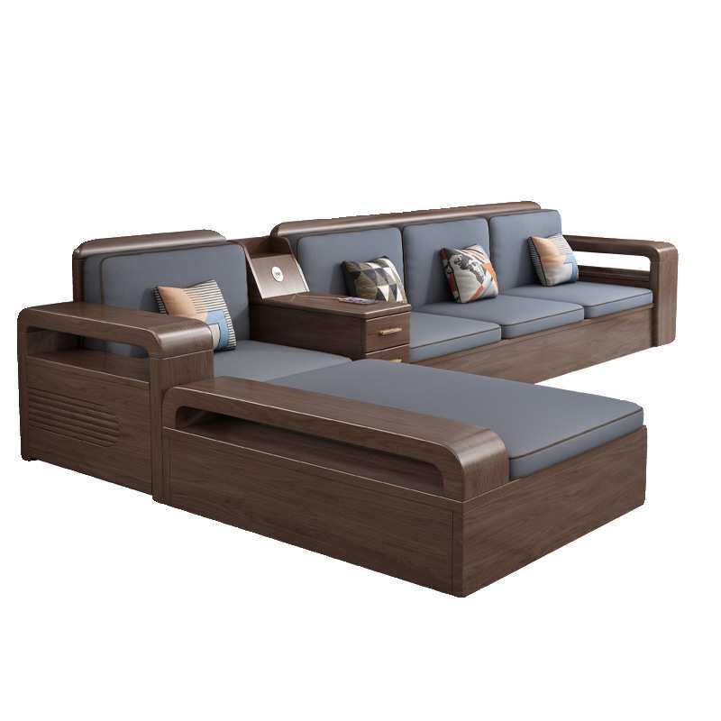 📚 德式实木沙发现代简约小户型胡桃木储物木质家具冬夏两用客厅沙发