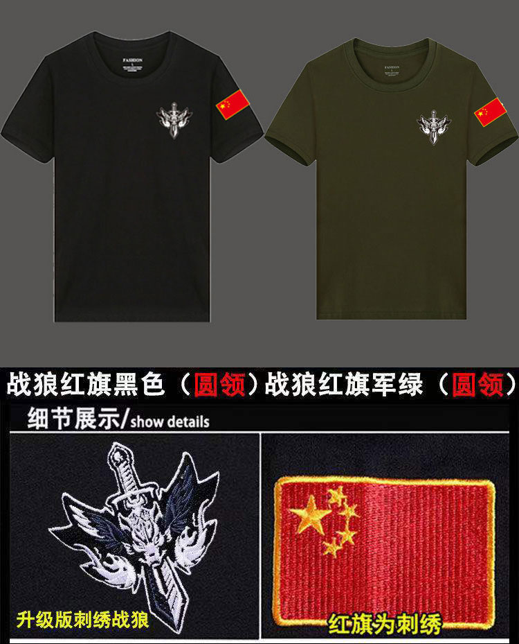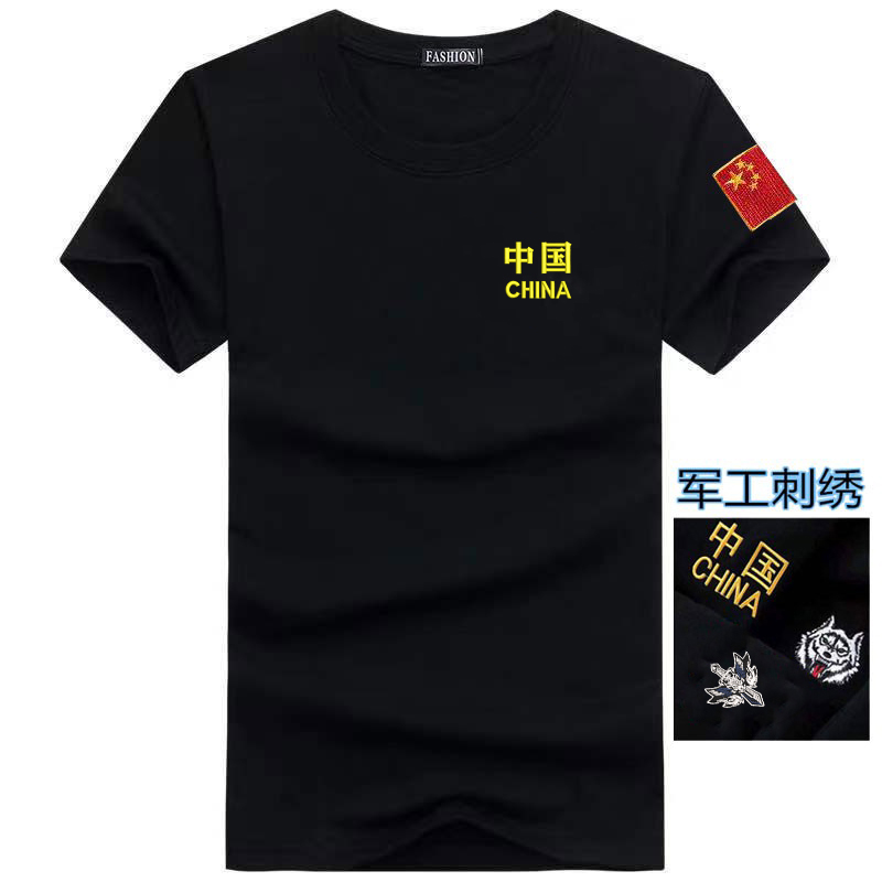 📚 100%纯棉刺绣logo夏季短袖t恤男士圆领宽松T恤爱国加肥加大码体恤