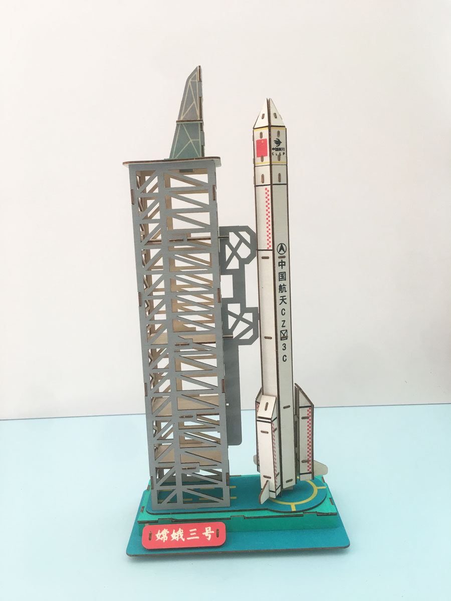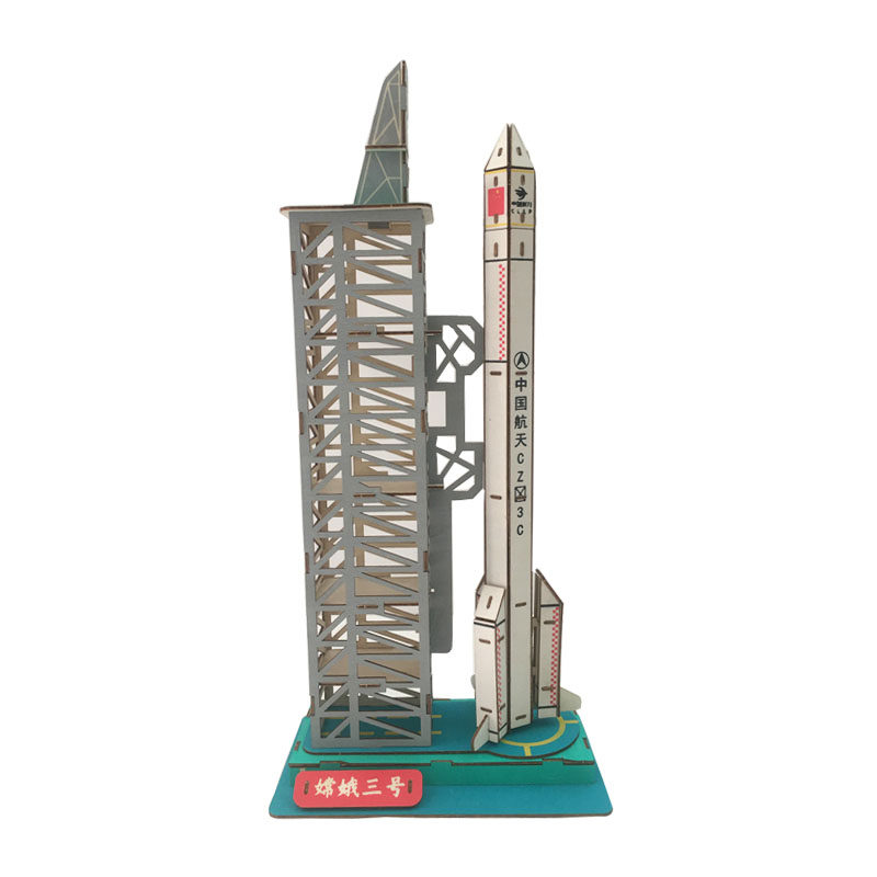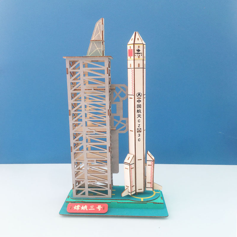 📚 木制拼装儿童手工益智玩具 中国航空航天嫦娥火箭模型3D立体拼图