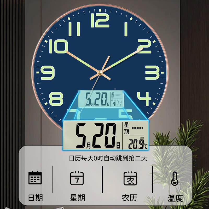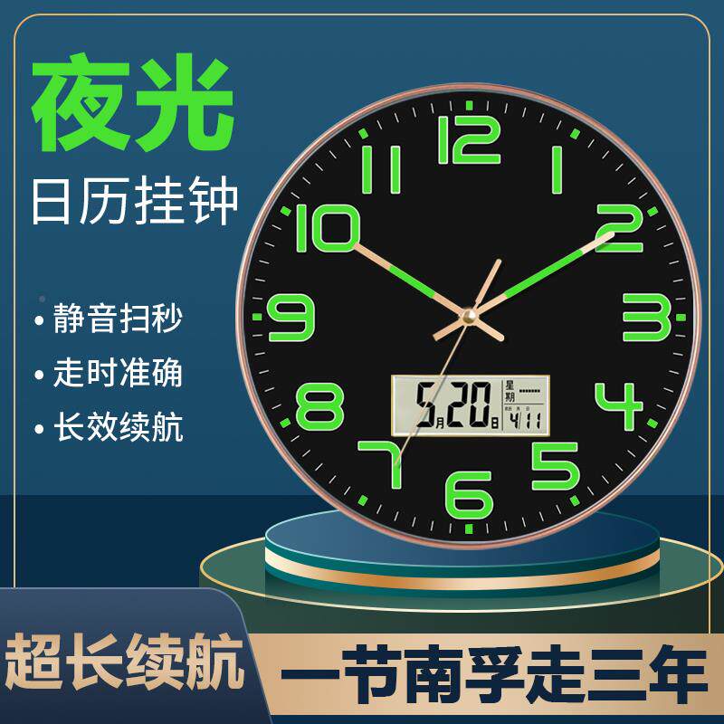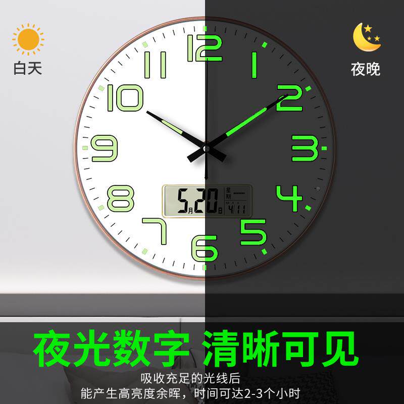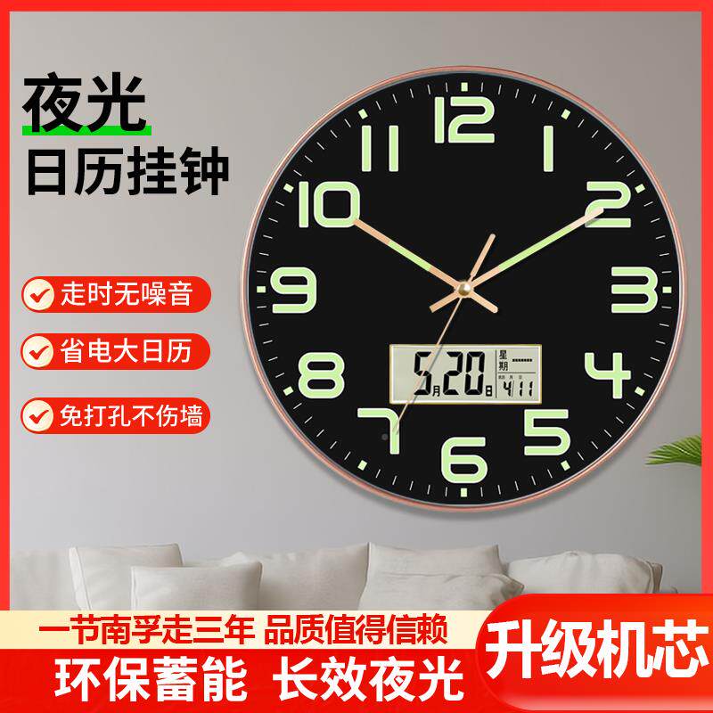 📚 用夜光挂钟时?尚卧室创静音钟表客厅意石RUL英挂钟家现代简约轻奢