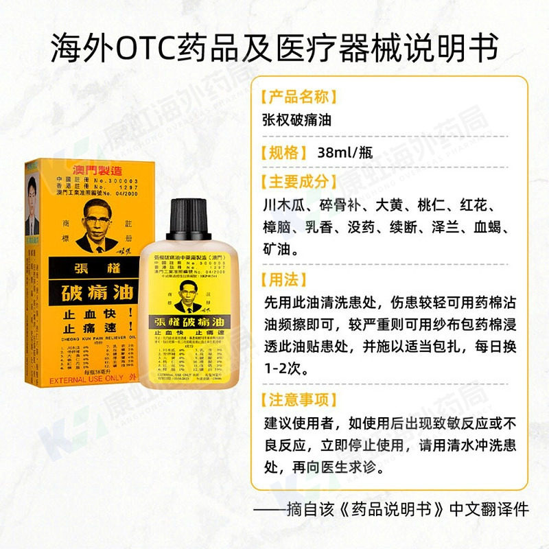 📚 原装进口张权破痛油澳门肌肉酸痛跌打损伤活血化瘀活络油38ml正品