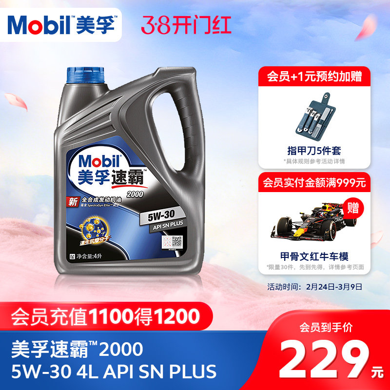 📚 官方旗舰正品Mobil美孚速霸2000 5W-30 4L API SN PLUS全合成机油
