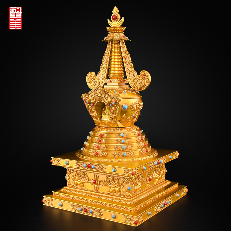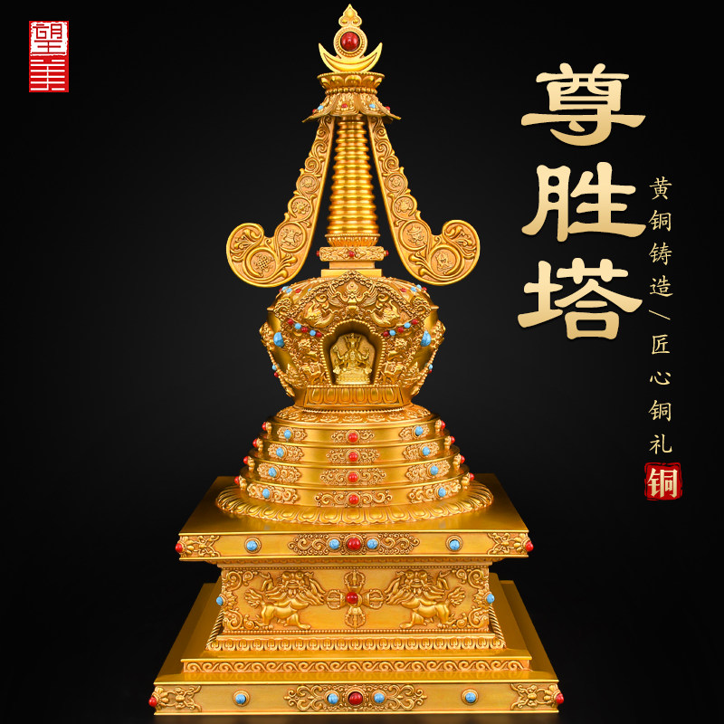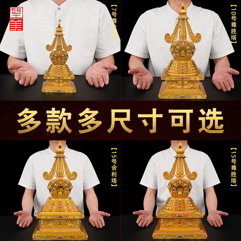 📚 黄铜尊胜塔佛塔摆件藏式供佛供奉家用舍利塔大号菩提塔噶当郎伽塔