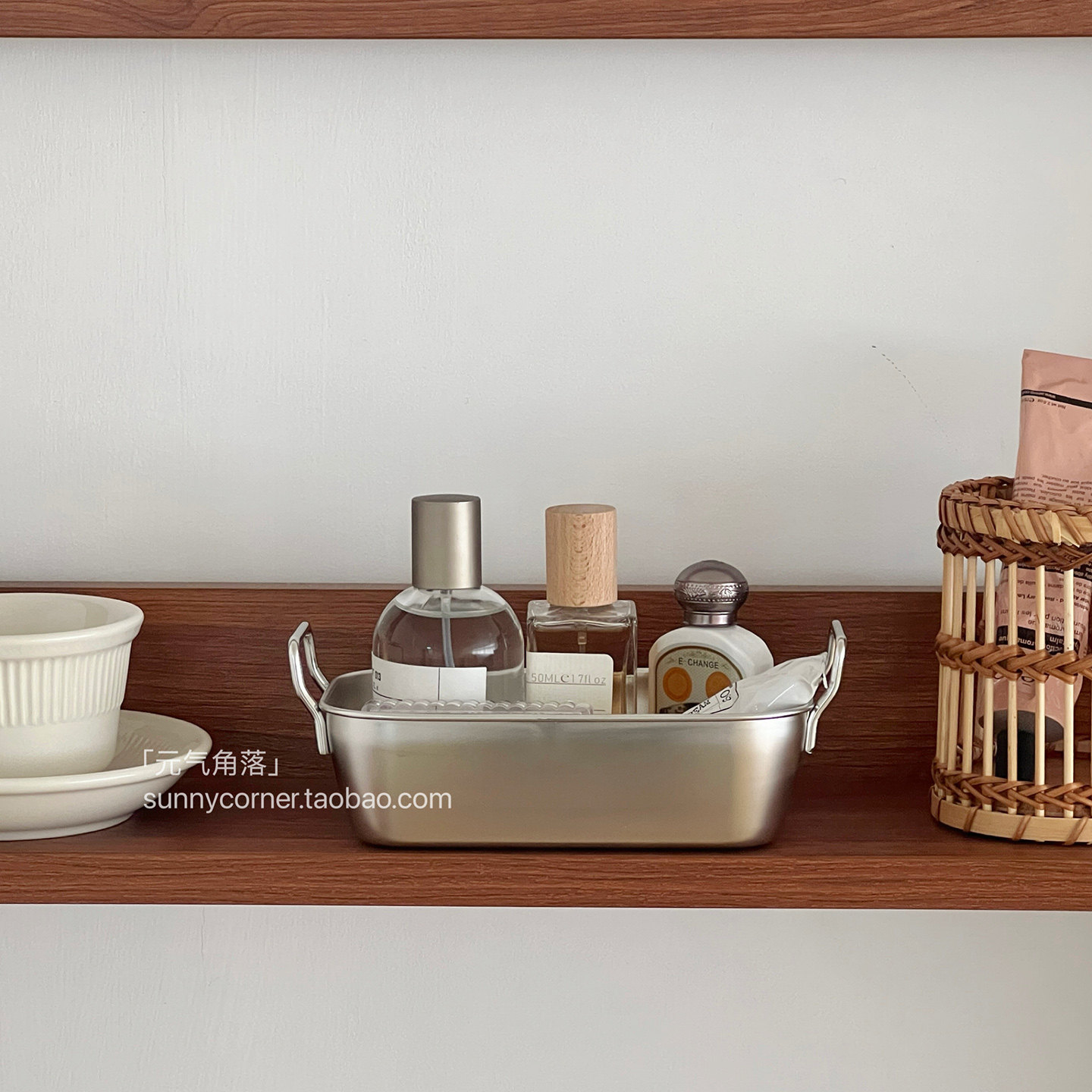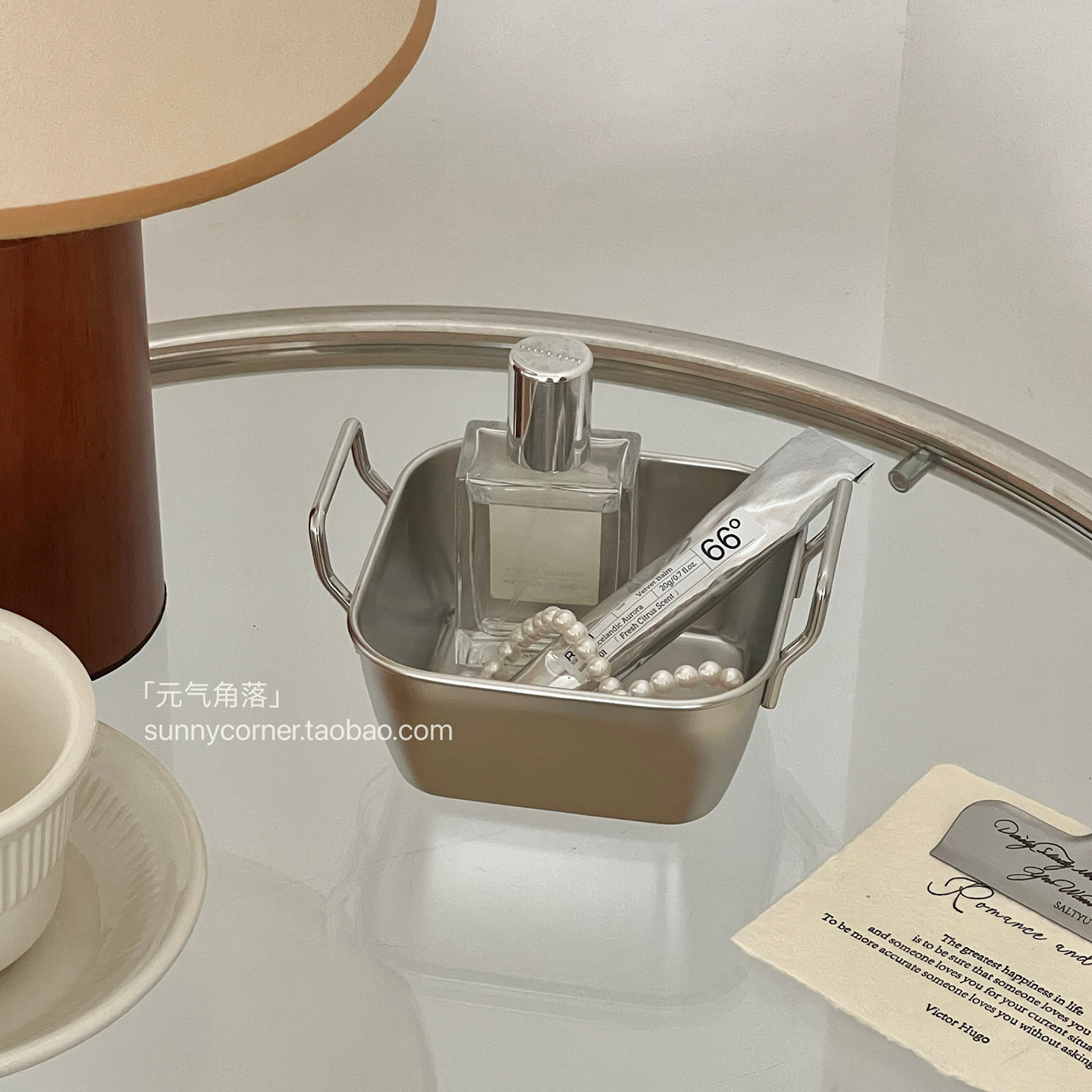 📚 ins简约不锈钢手提收纳盒桌面化妆品护肤品杂物整理置物筐收纳篮