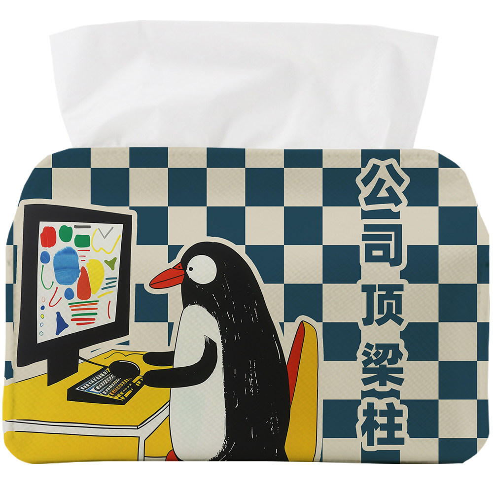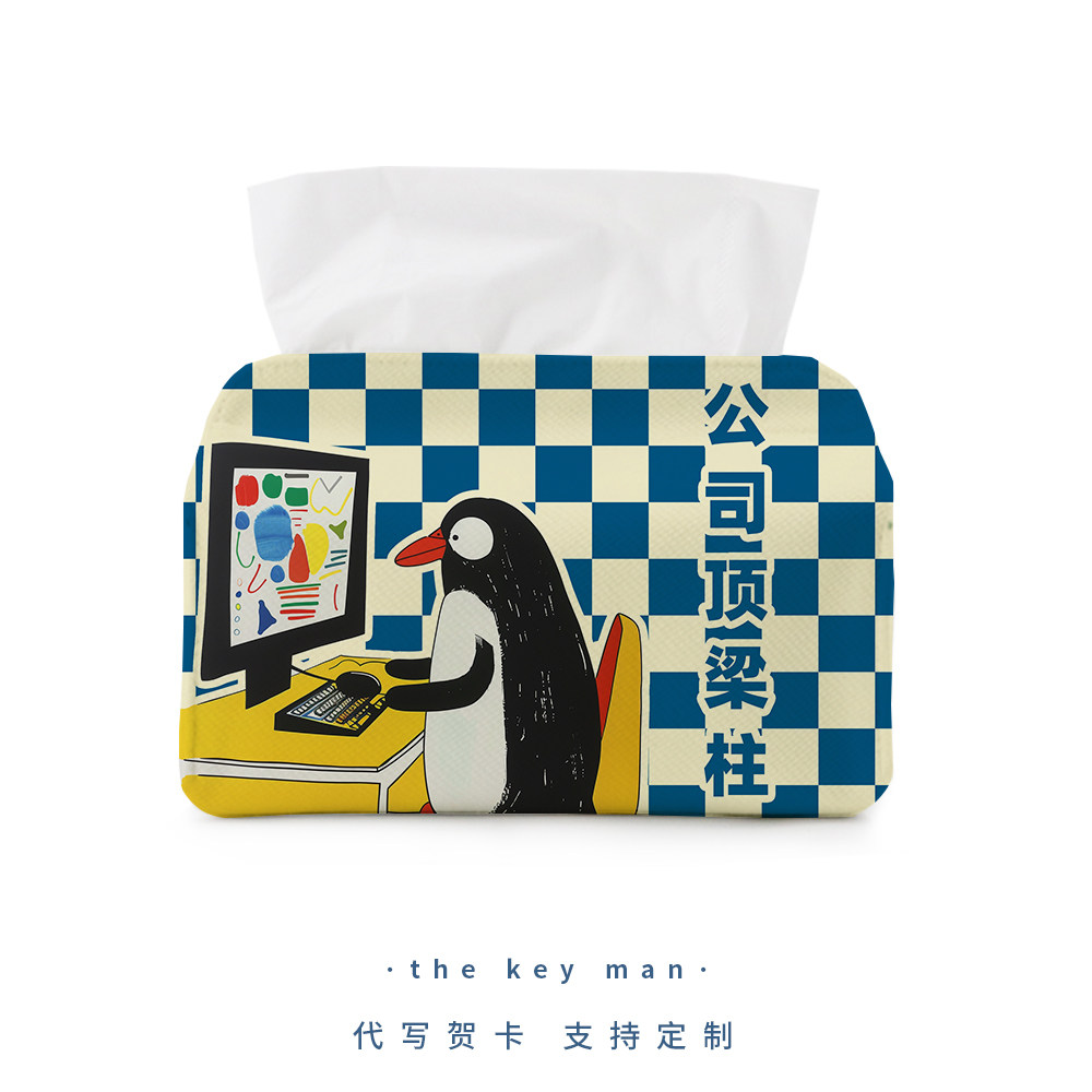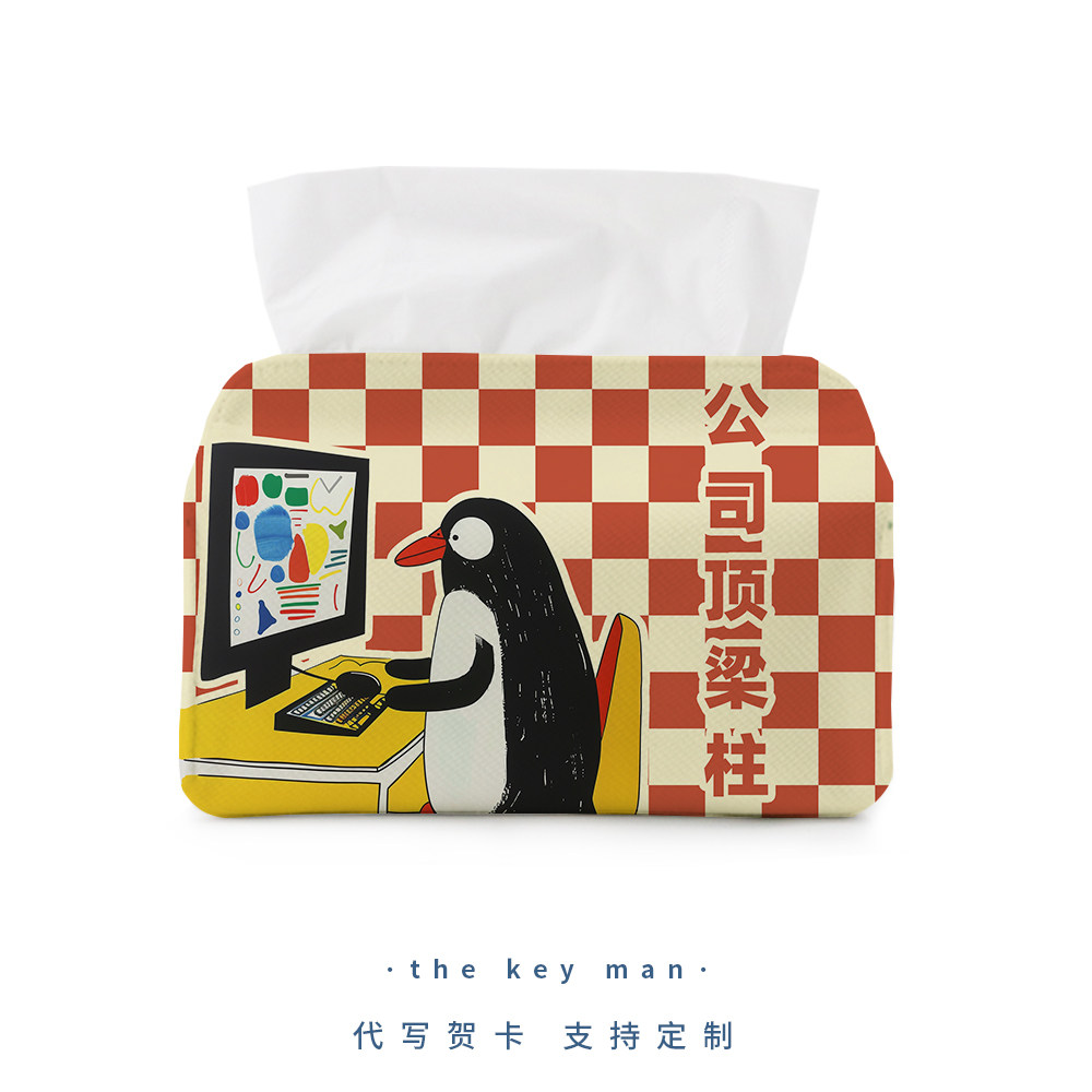 📚 公司顶梁柱可爱搞笑纸巾盒办公桌抽纸收纳套打工人车载布艺纸巾套