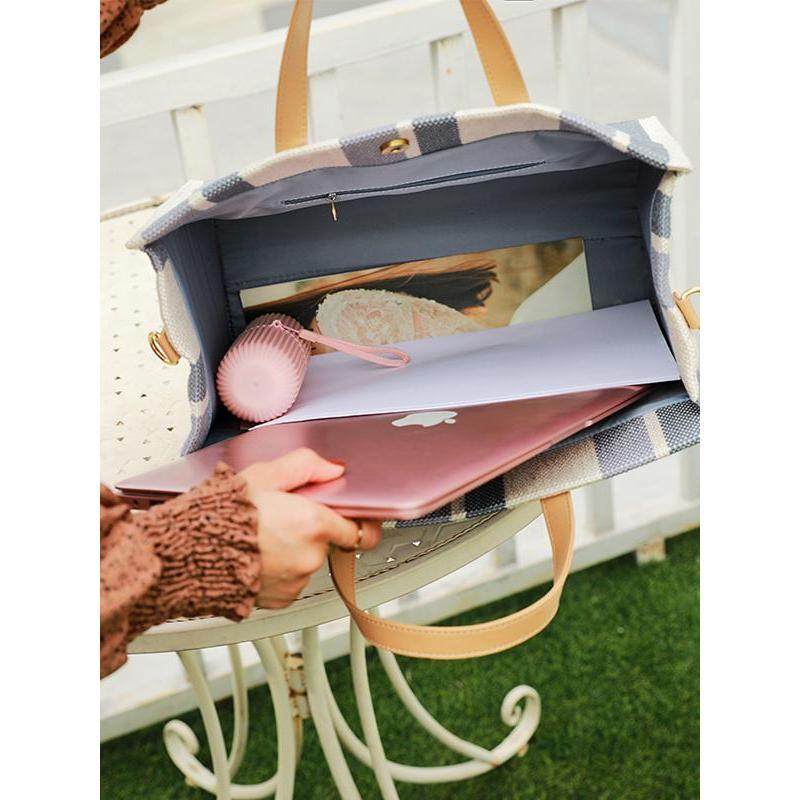 📚 高颜值上班通勤A4笔记本电脑包大容量硬挺编制帆布教师上课手提包
