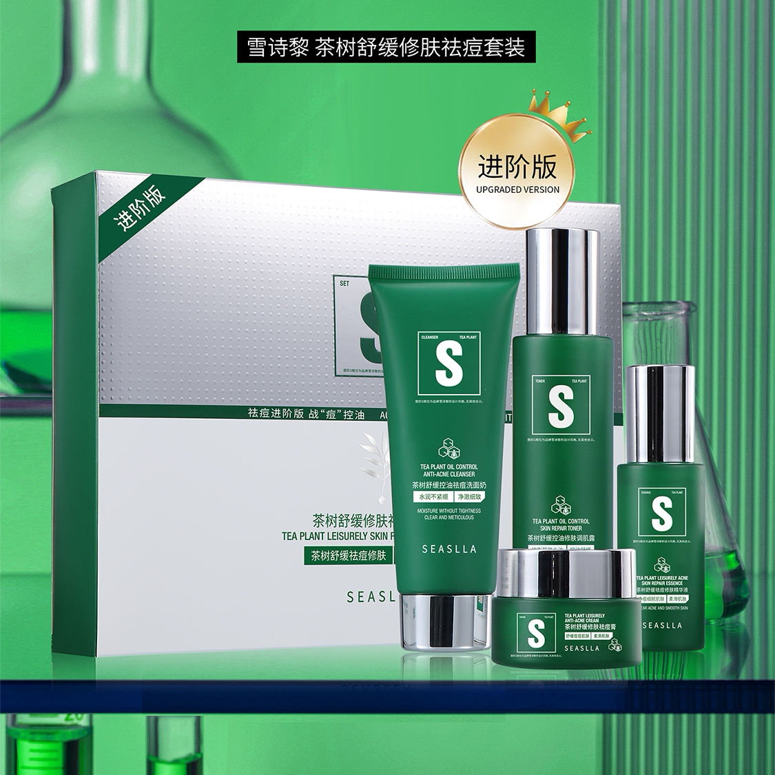 📚 雪诗黎茶树舒缓修肤祛痘套装洗面奶霜露精华液除螨粉刺