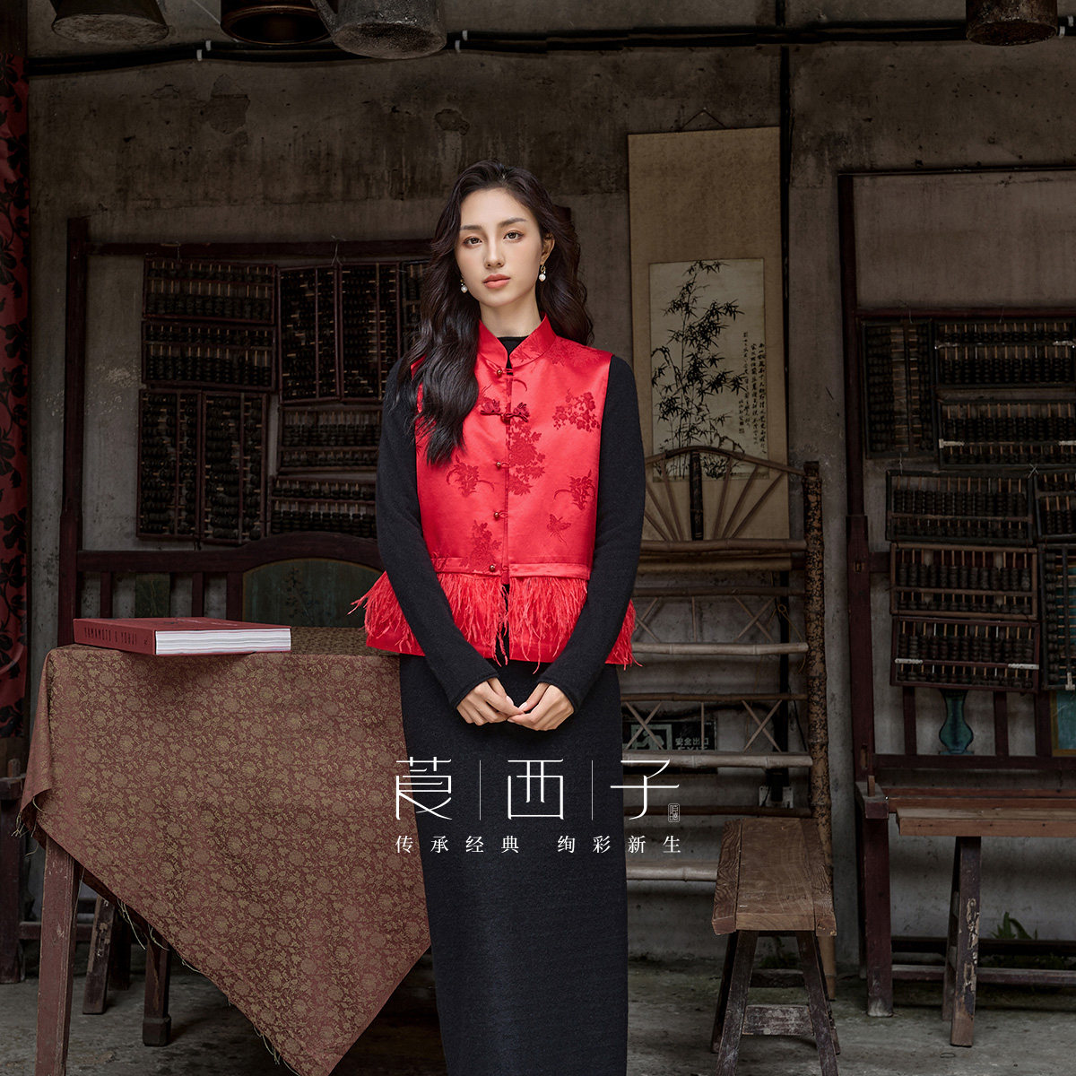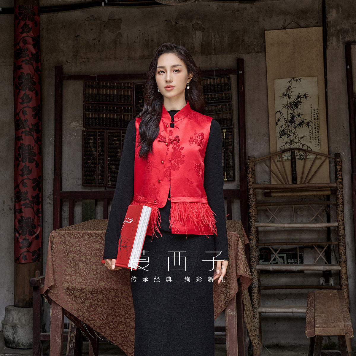 💥惊艳!清莨西子新中式国风大红色棉服马甲,过年新选择🧨
