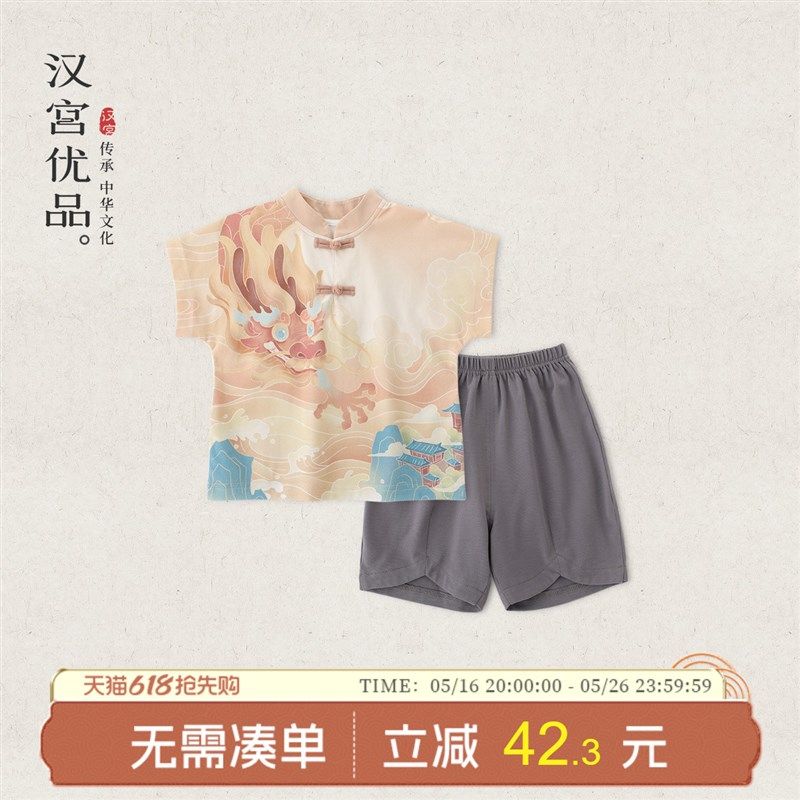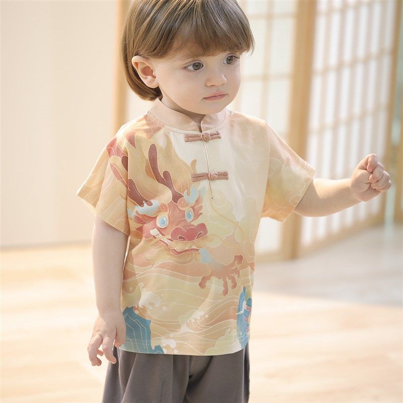 📚 儿童套装夏季薄款国风汉服龙宝宝周岁礼服夏天短袖两件套男童衣服