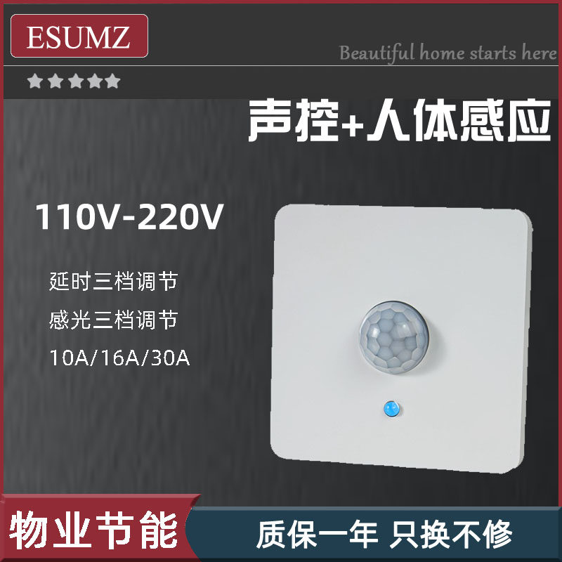 📚 86型声光控加人体感应开关声控智能控制楼道延时LED红外线传感器