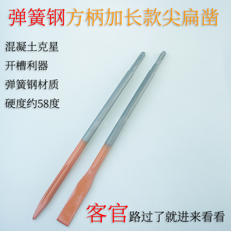 📚 正品加长弹簧钢凿子水电混凝土开槽钻头冲击钻方柄方形尾扁凿耐用