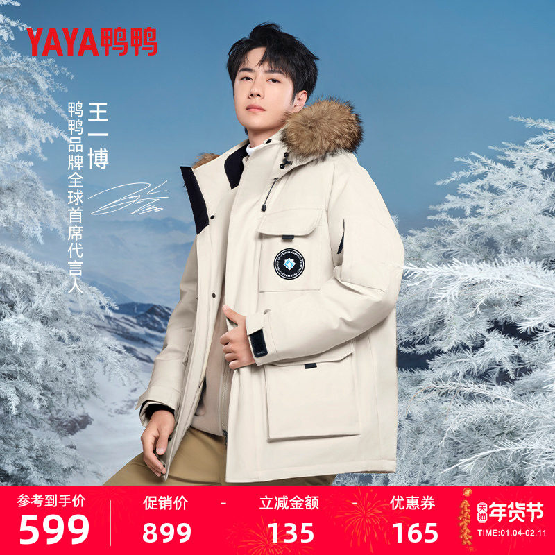 📚 【王一博明星同款】鸭鸭紫钻系列羽绒服男女冬工装大毛领派克外套