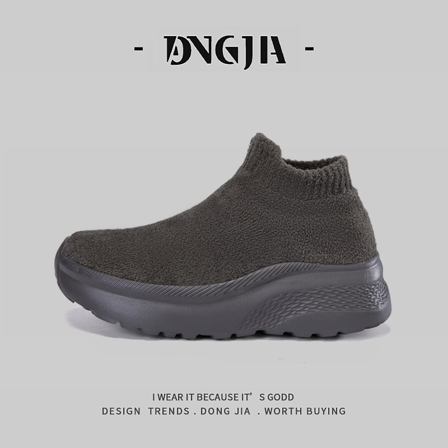 📚 稀缺好货~外贸日本单袜子鞋男女款冬季加绒保暖一脚蹬轻便旅游鞋
