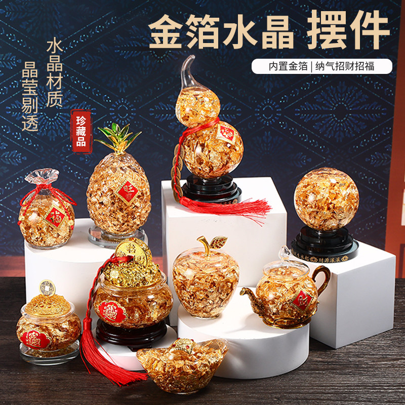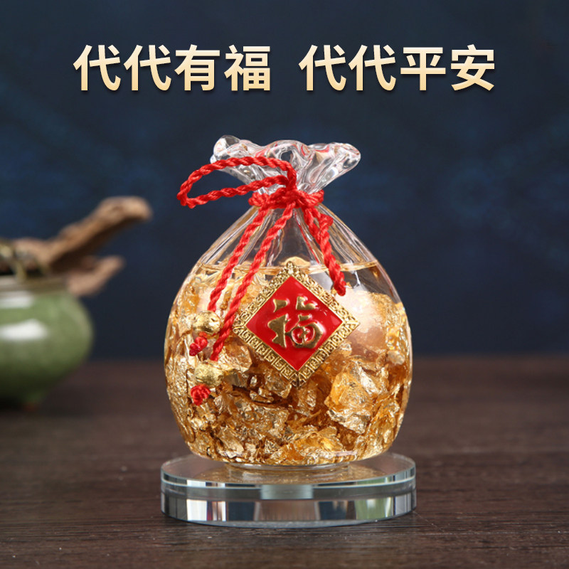 📚 水晶金箔大福袋元宝摆件招财聚财家居办公财位摆放中式风生水起