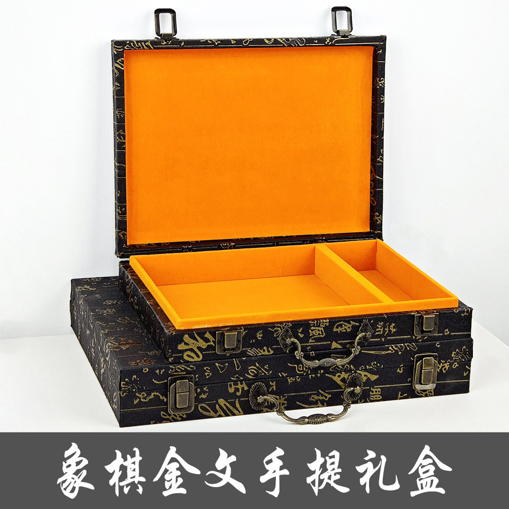 📚 中国象棋棋盒收纳金文棋盘盒便携式手提盒复古简约棋子收纳盒清仓