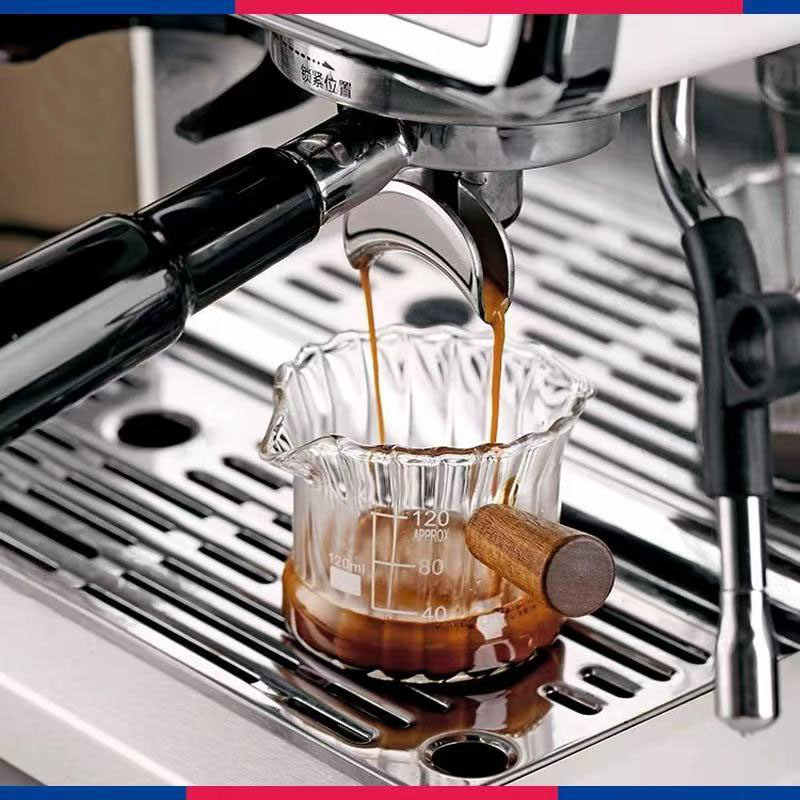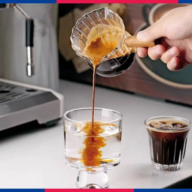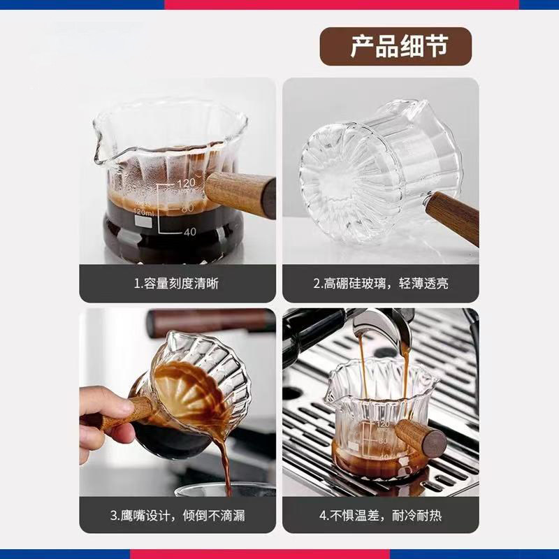 📚 咖啡杯玻璃小奶盅带刻度意式浓缩咖啡萃取量杯盎司杯迷你木柄奶盅