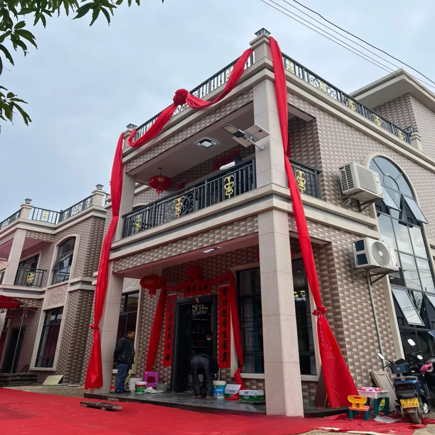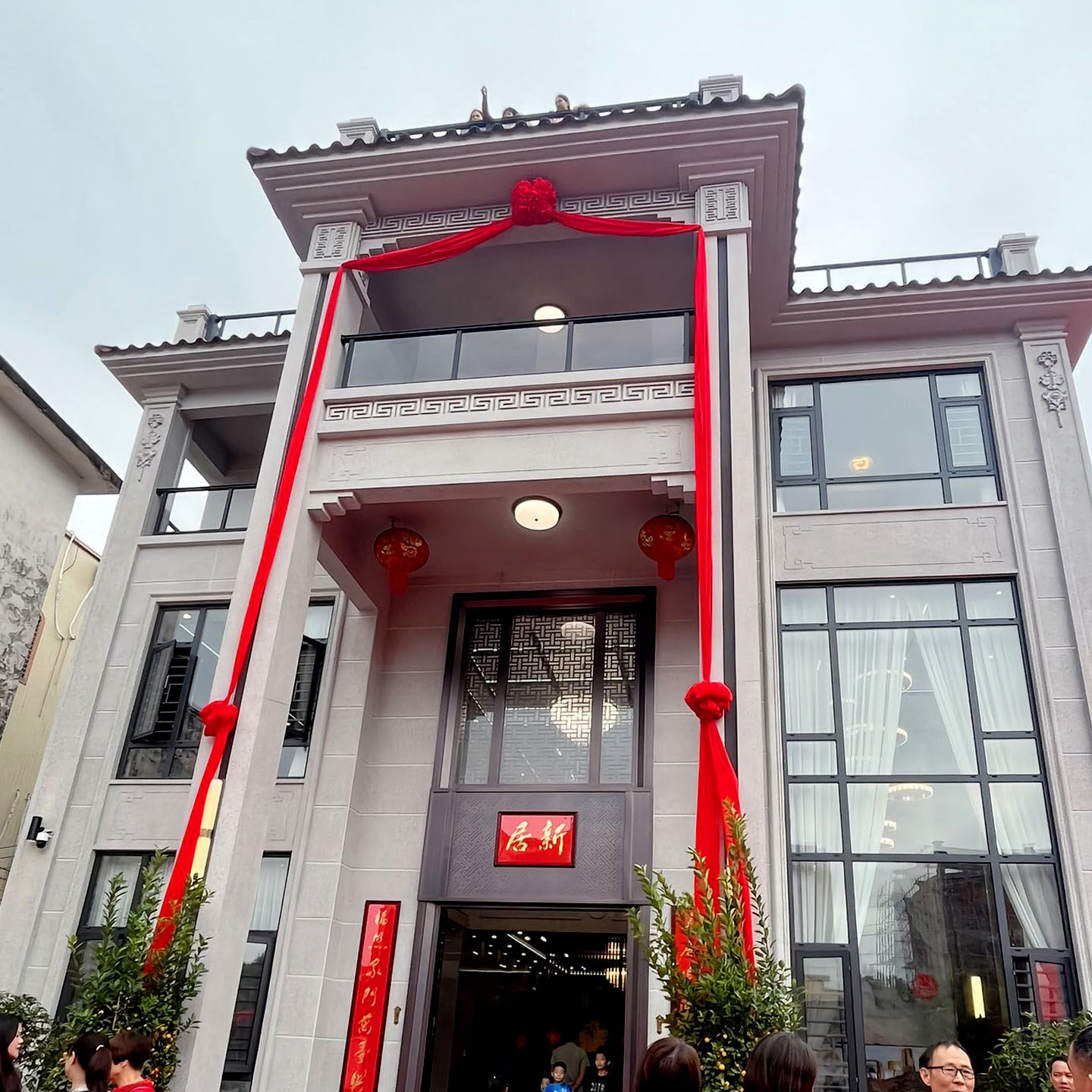 📚 新年乔迁竹子上的大红花农村自建房新房装饰红绸带布条外墙大红布