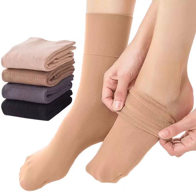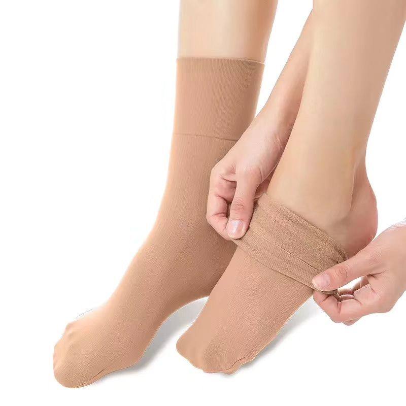 📚 袜子防寒保暖秋冬中筒保暖薄绒雪地耐磨男女肉色袜子加绒丝袜短款