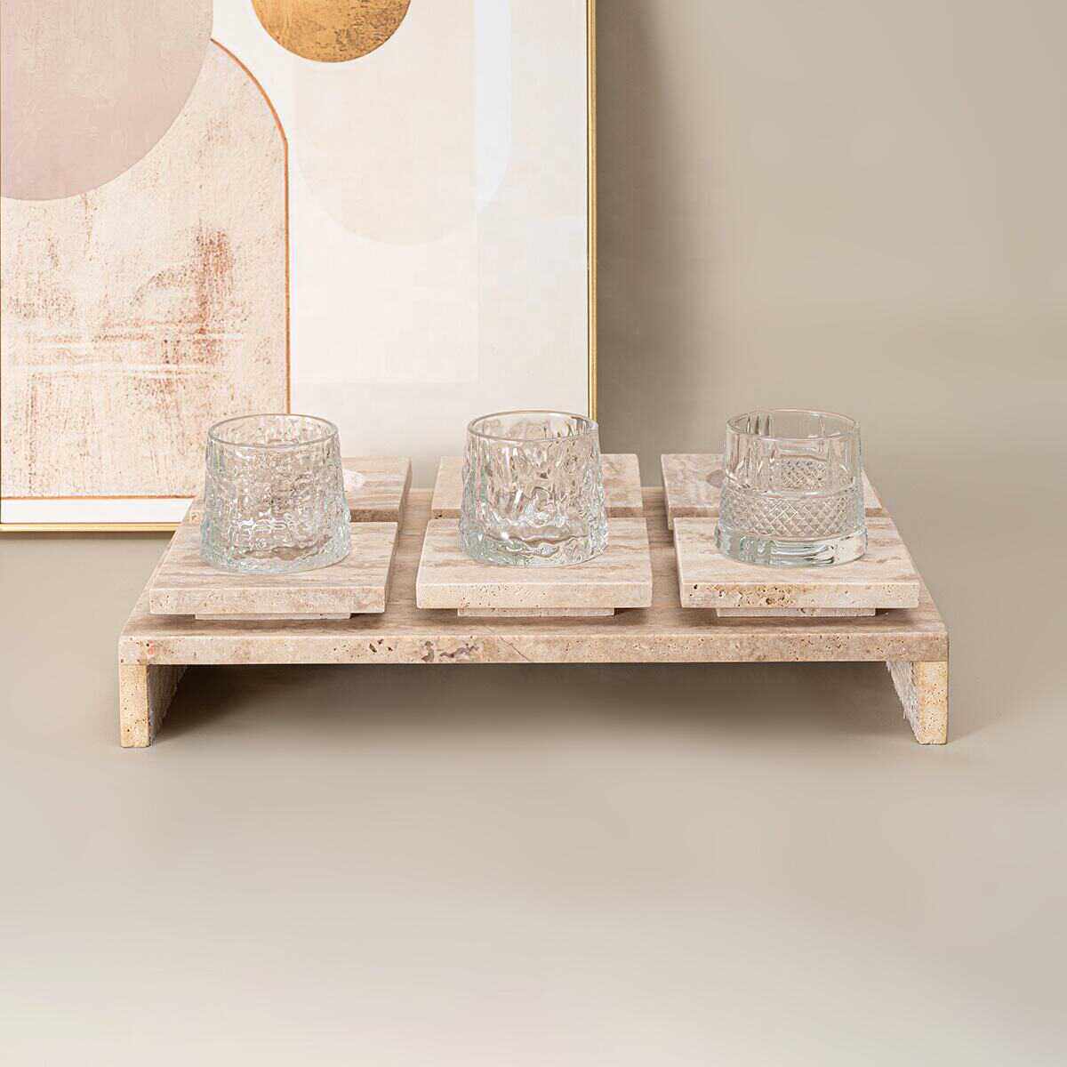 📚 天然黄洞石托盘摆件样板间售楼处客厅茶几茶托杯垫桌面装饰品软装