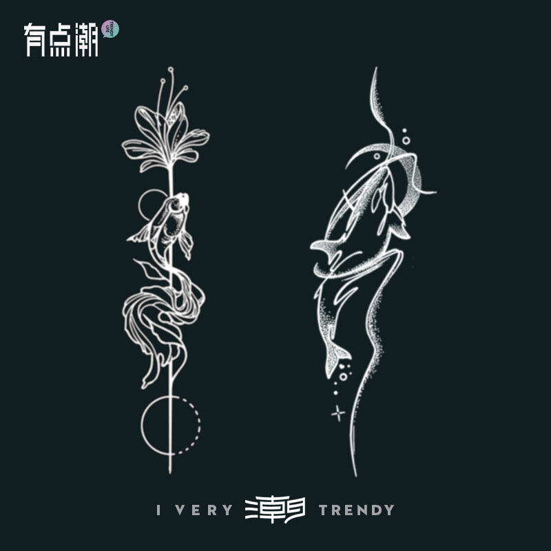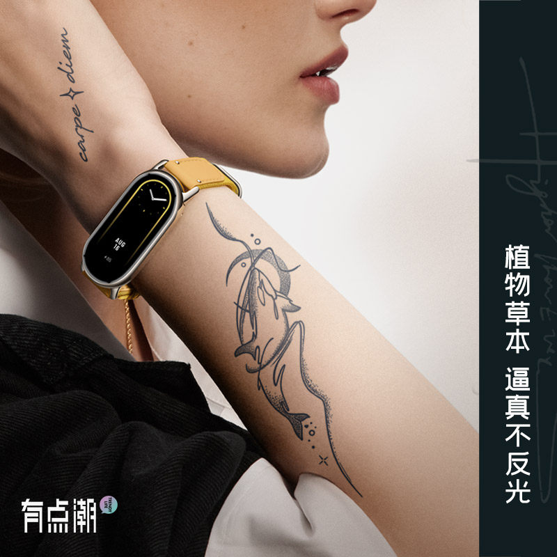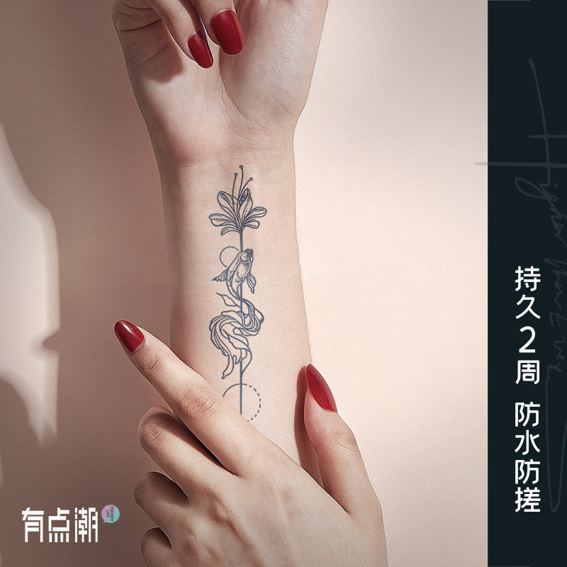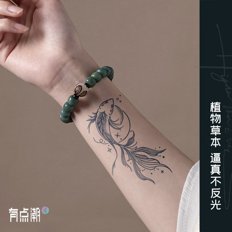 📚 鲸鱼锦鲤果汁草本纹身贴半永久防水女持久高级感遮疤手腕花臂蝴蝶