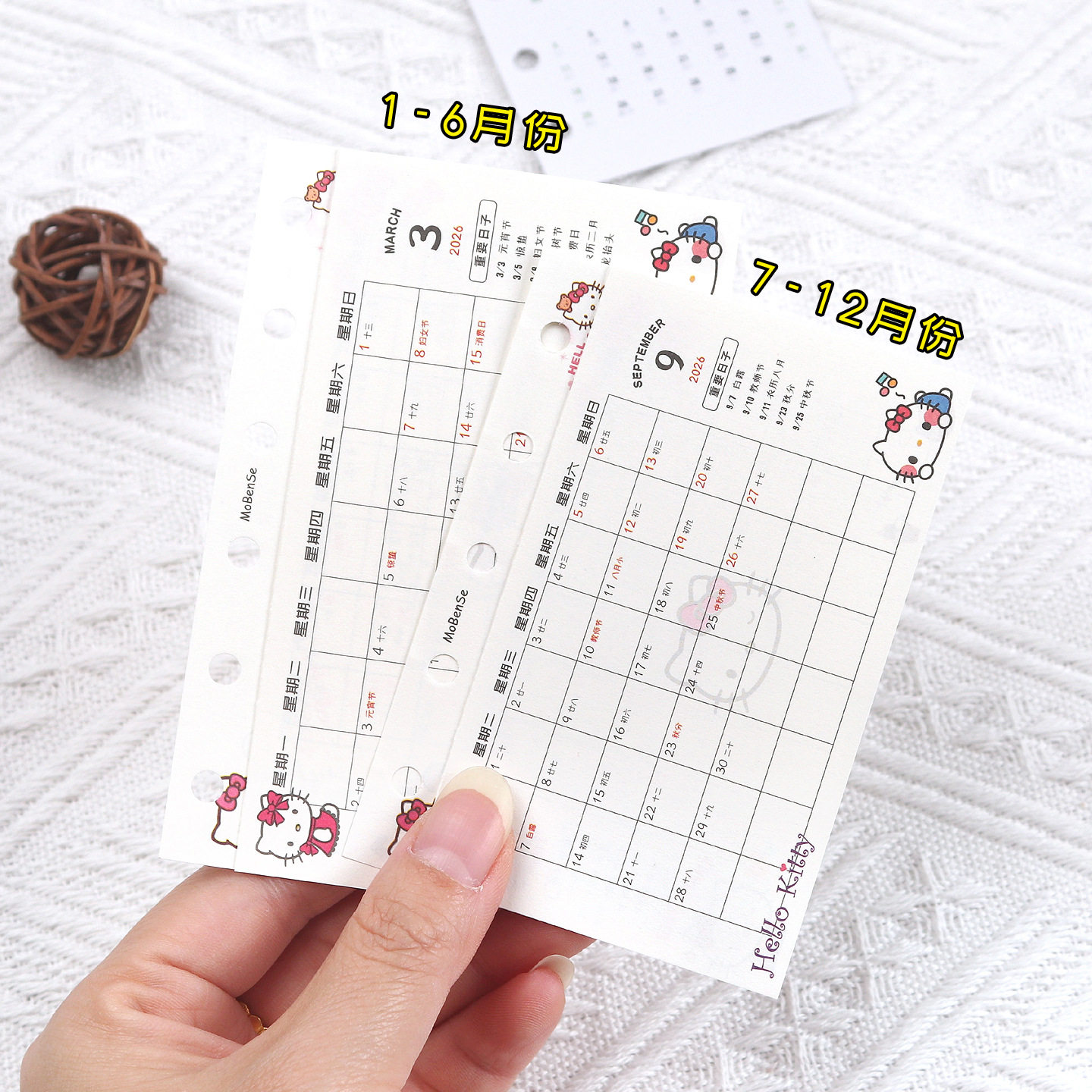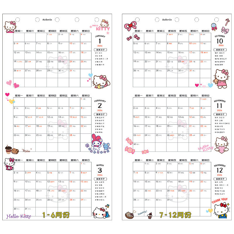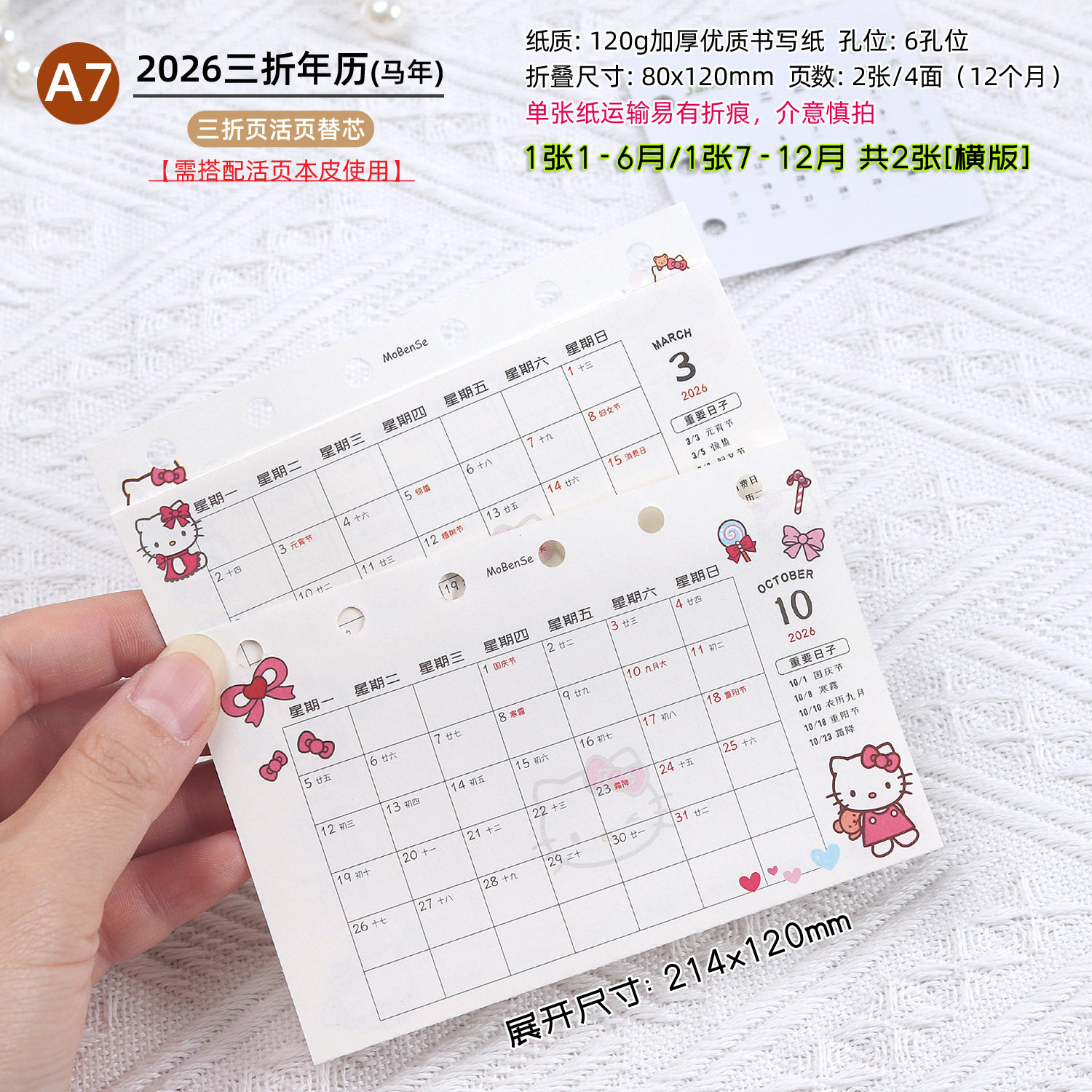 📚 2026年M5A7彩色三折年月历表活页内页夹扉页日历表打卡月计划2张
