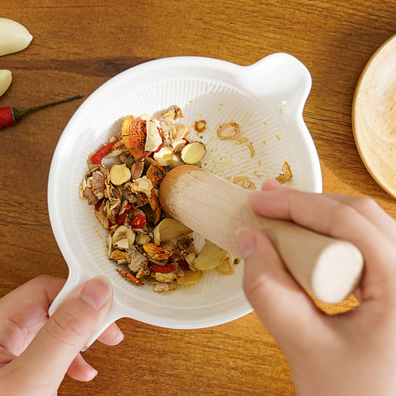 📚 捣蒜研钵陶瓷压蒜器瓷质捣药罐乳钵捣碎研磨研药碗家用陶瓷研磨棒