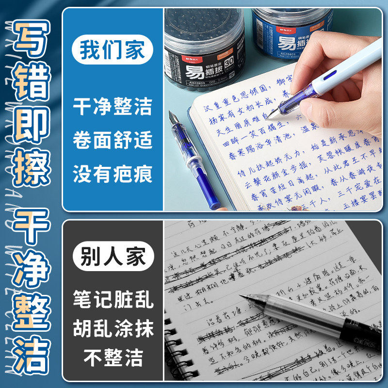 📚 晨光热可擦墨囊热敏可擦墨囊晶蓝三年级钢笔小学生专用墨囊可替换黑色易擦5年级练字3.4mm口径官方旗舰店正品