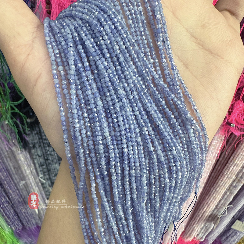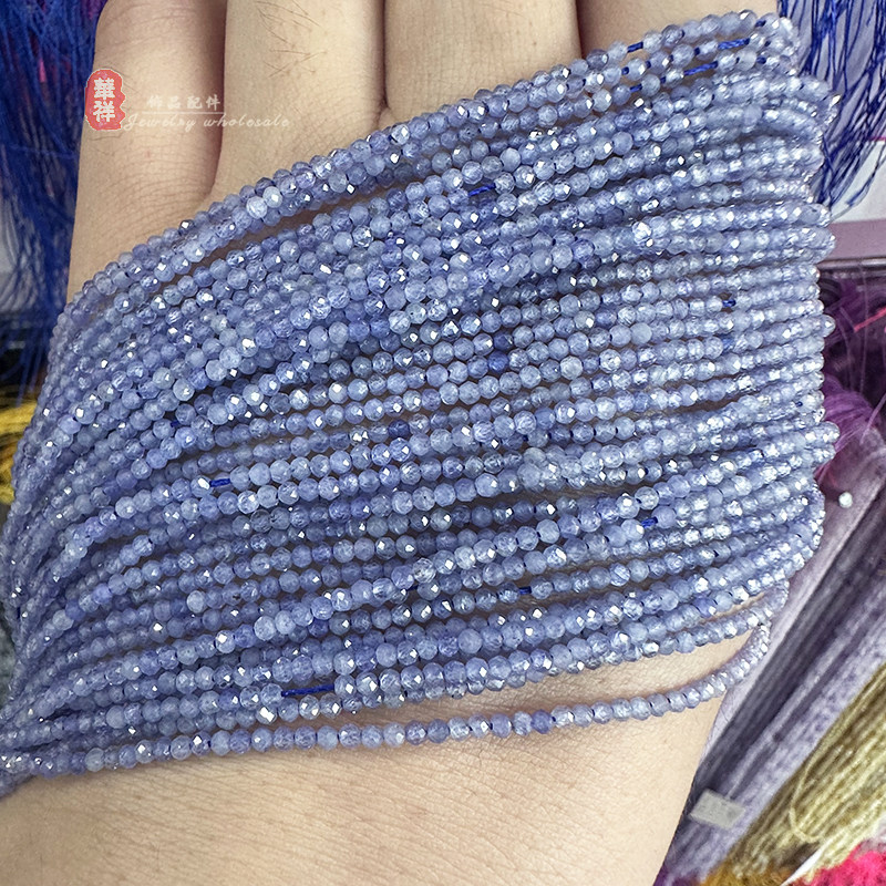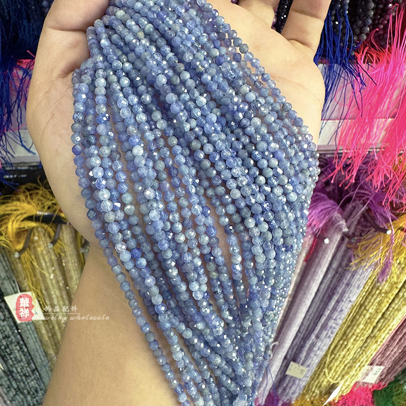 📚 天然坦桑石切面圆珠 小颗粒刻面散珠水晶切角串珠手链项链diy配件