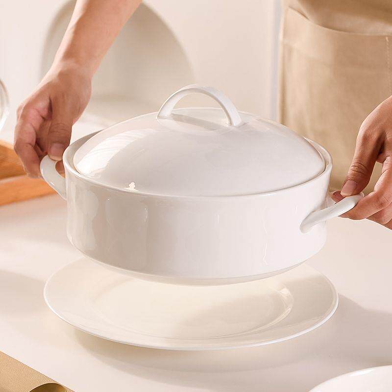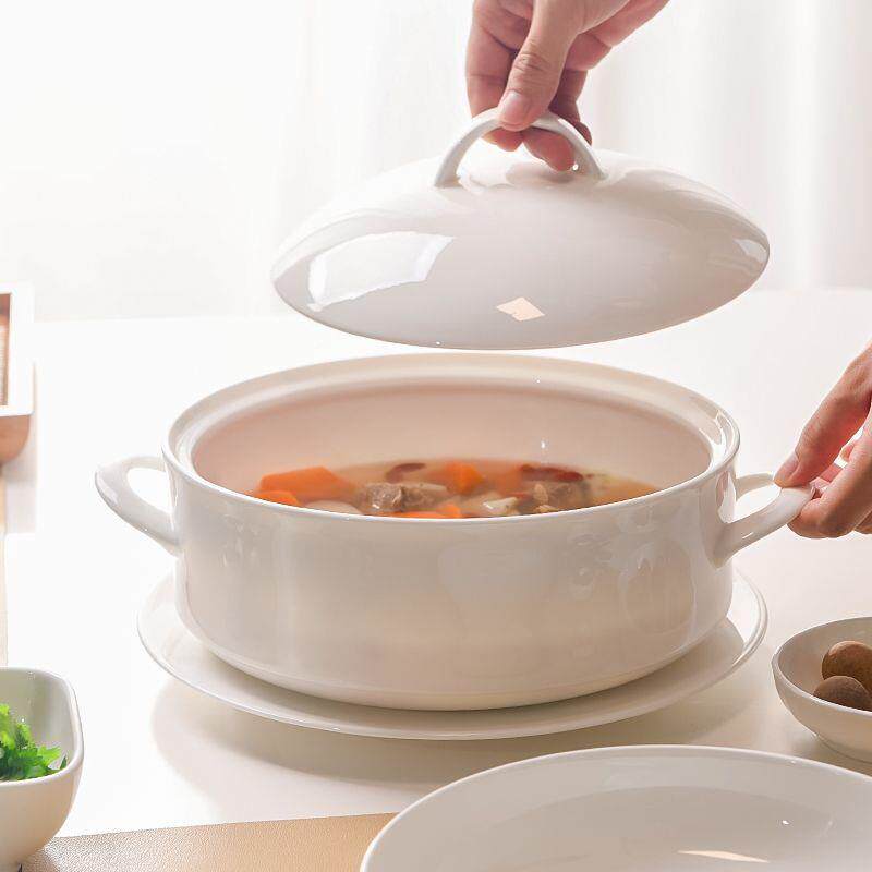 📚 骨瓷汤锅盆汤家用圆形大号汤盆带盖约MvXFhrCv高颜值陶瓷餐具简带