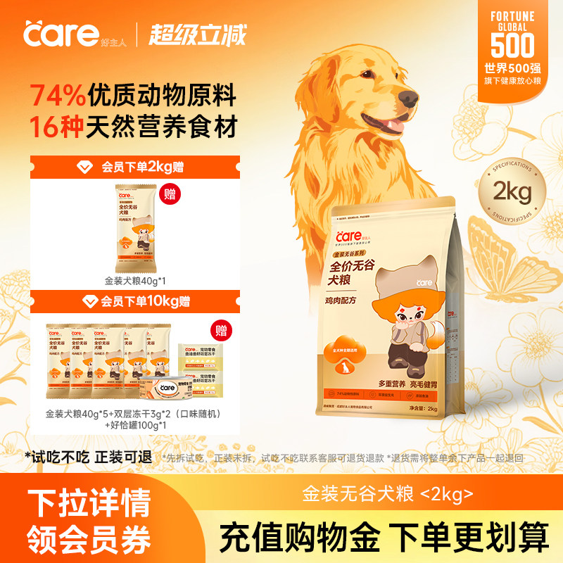 38¥ CZ005 9IzdUw2Fi1q¥ https://m.tb.cn/h.i3n2SVg 好主人金装无谷狗粮奶糕中小型犬幼犬成犬全价鸡肉犬粮 --------------------- 【原售价】65元 【现售价】62元。