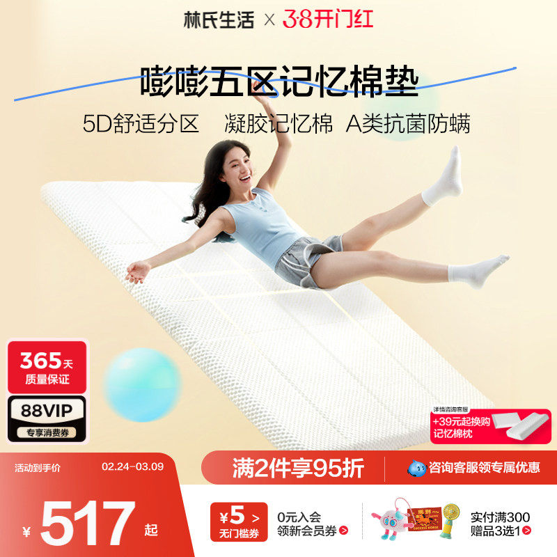📚 林氏生活记忆绵分区床垫软垫家用海绵垫子单人榻榻米租房宿舍床褥