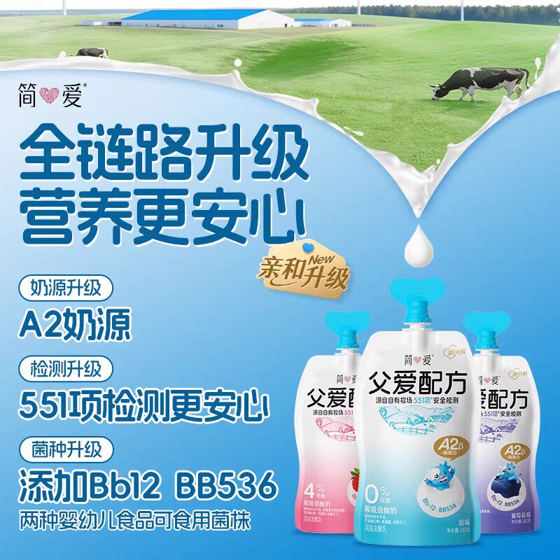 📚 简爱父爱配方儿童孩子奶西梅葡萄无添加剂0%2%4%蔗糖果蔬酸奶