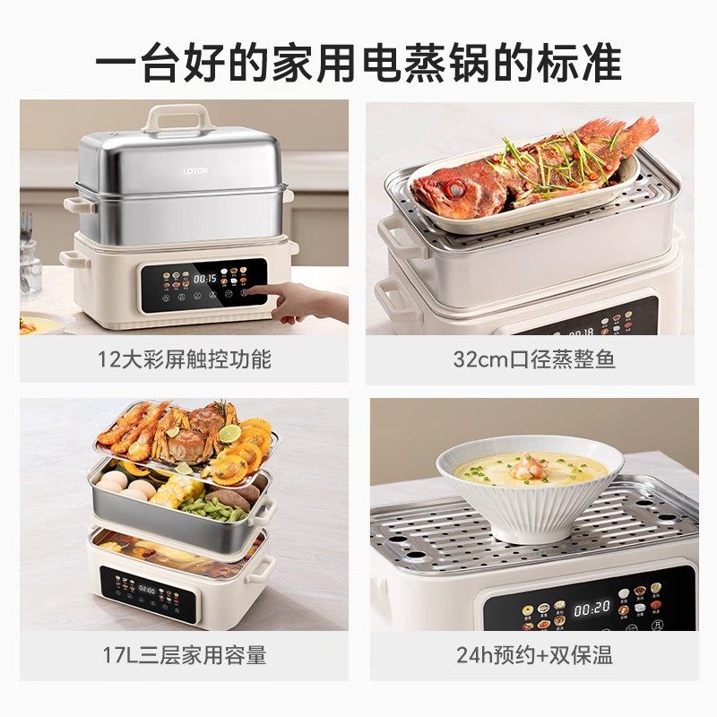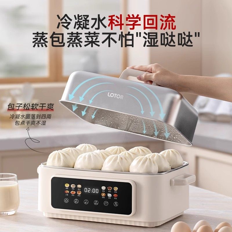 📚 lotor电蒸锅不锈钢多功能家用三层全自动蒸煮炖一体锅2024年新款